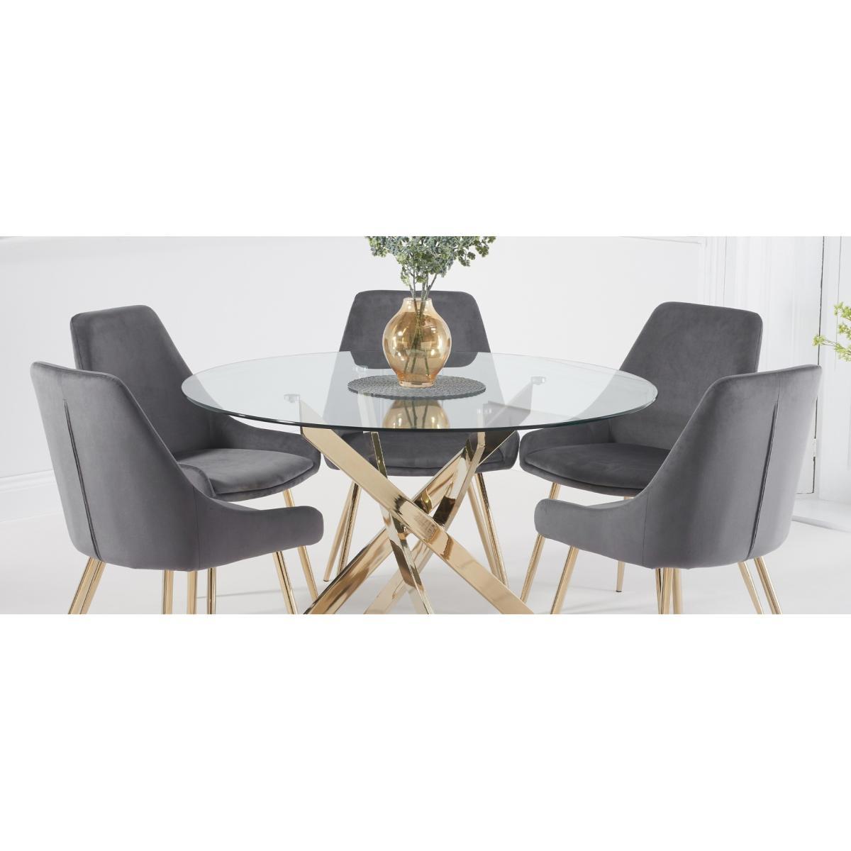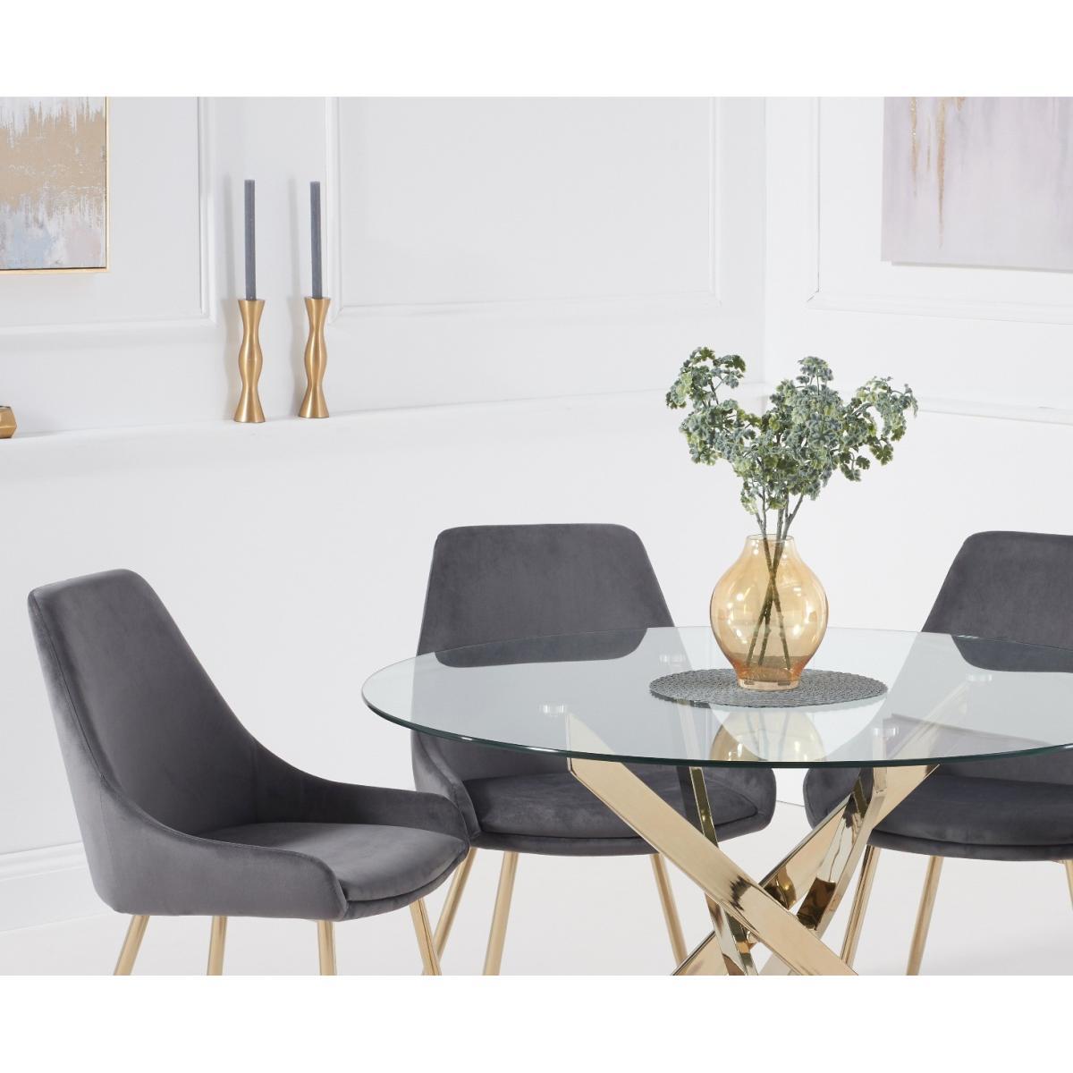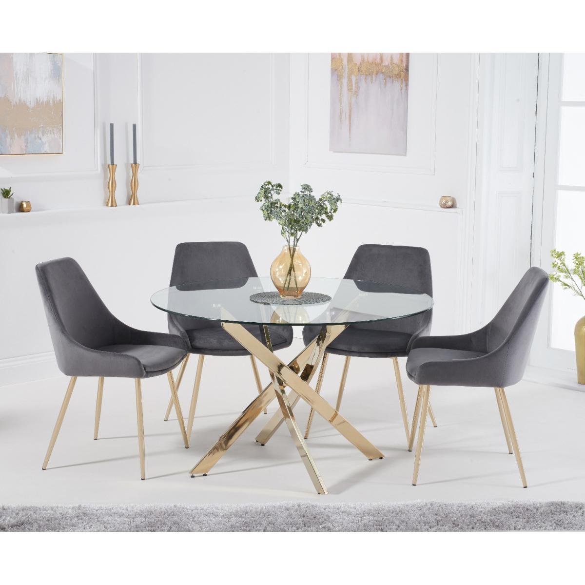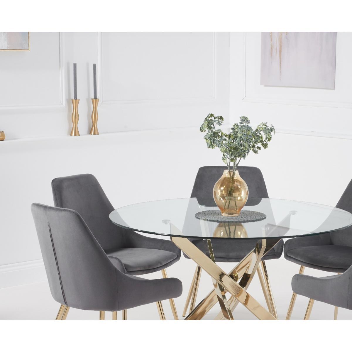 The detailed, sculpted base is the signature style of our Denver table, and at 120cm it’s the perfect size to seat four people comfortably. Pair with our elegant Fern chairs for a statement style. Ultra-modern glass top 120cm top - perfect for seating four people Pair with the Fern velvet chairs for ultimate style 12 month guarantee