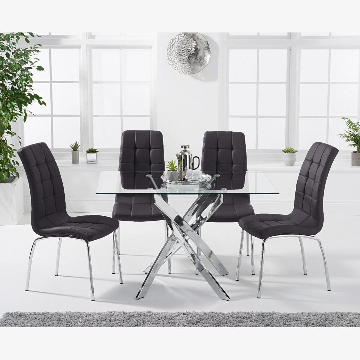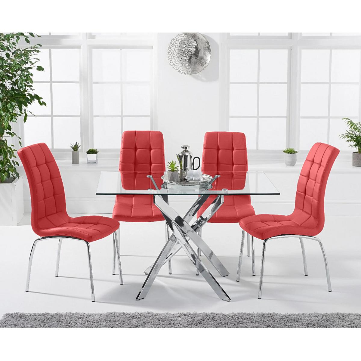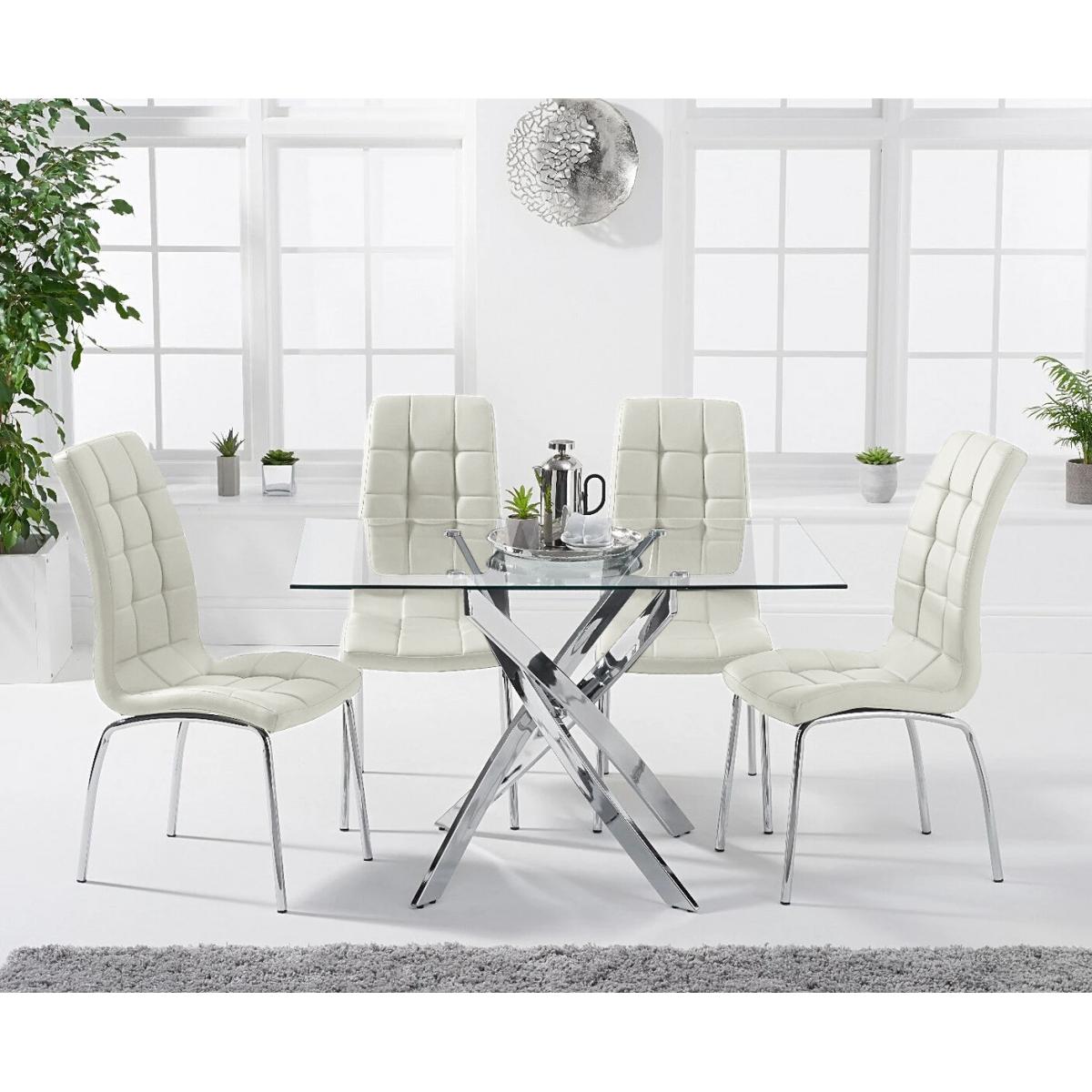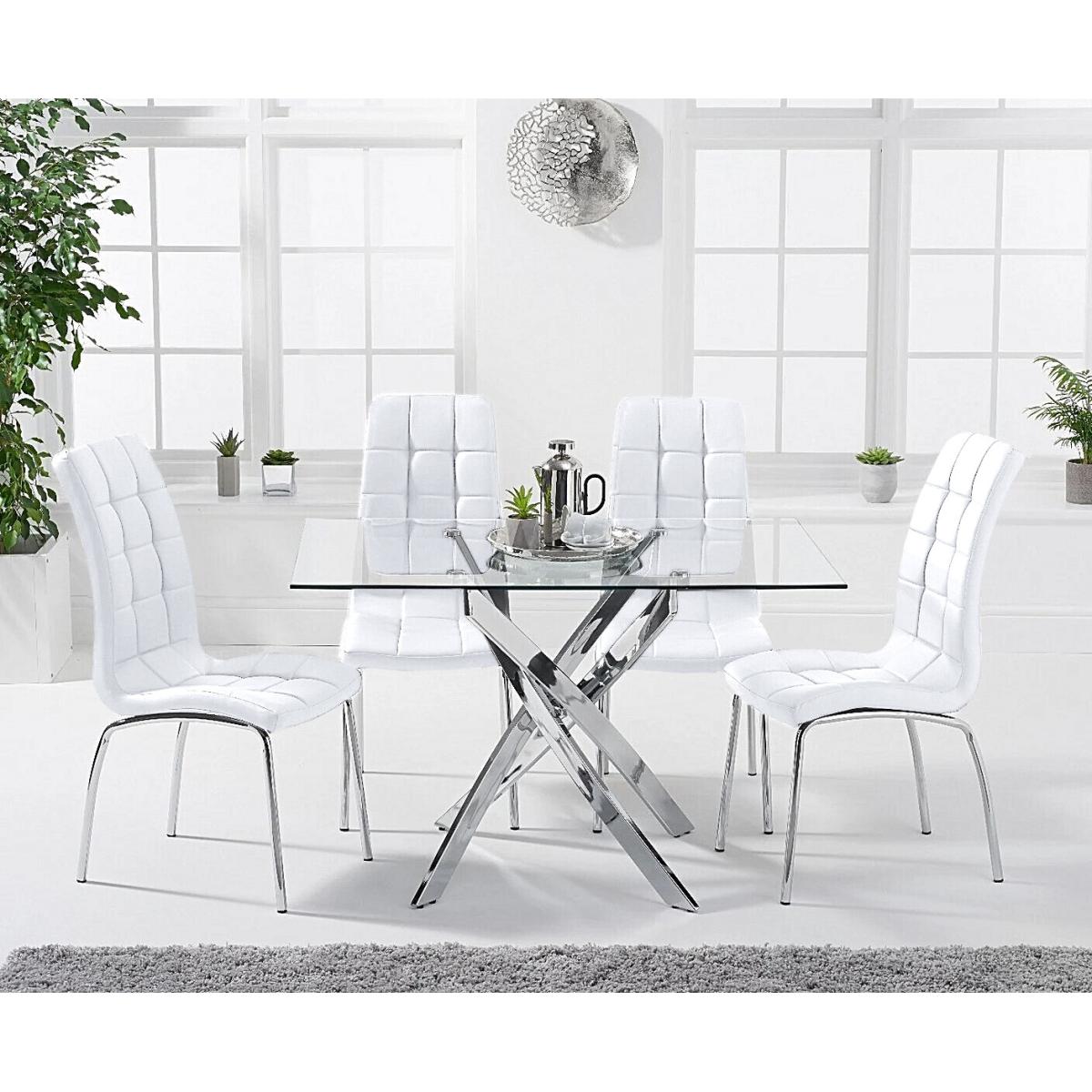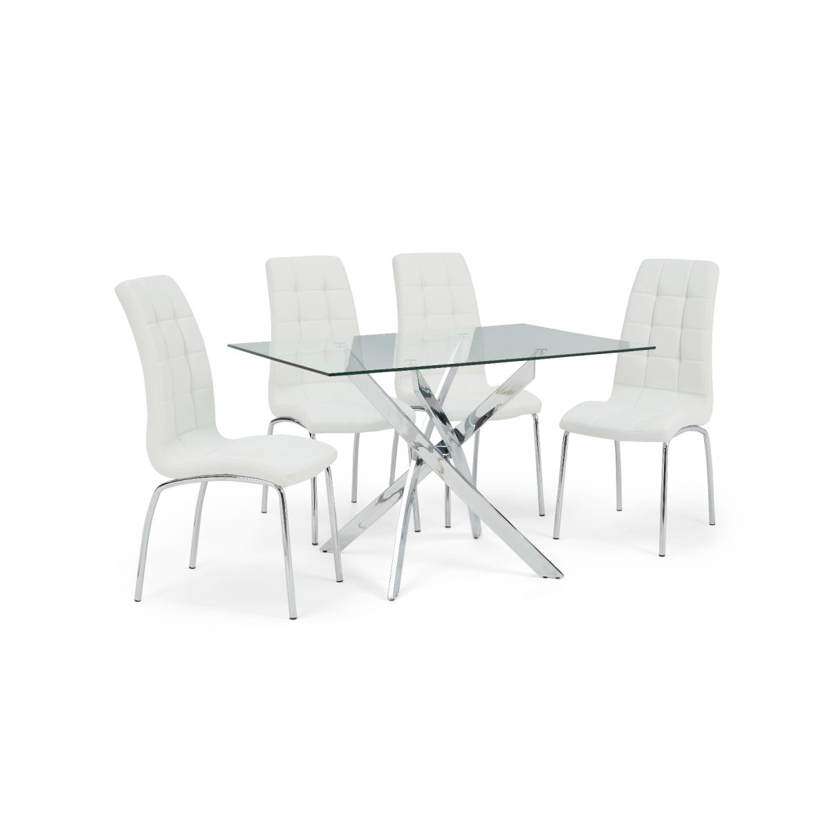 Denver 120cm Rectangular Glass Dining Table with 4 White Enzo Chairs