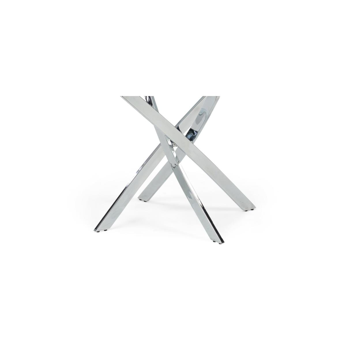 This dining set is a sleek choice that effortlessly suits modern and contemporary interiors. I love how the glass top adds a sense of lightness and openness, making it ideal for smaller spaces or those aiming for a minimalist aesthetic. The white Enzo chairs offer a crisp, clean look that pairs well with various colour schemes, while their comfortable padding encourages relaxed dining. For styling, consider adding contrasting elements like textured placemats or colourful tableware to bring warmth and personality. It works particularly well in monochrome or neutral interiors but can be easily dressed up with bold accessories or soft textiles for a more eclectic vibe. This set is versatile, timeless, and perfect for creating a sophisticated yet inviting dining area.