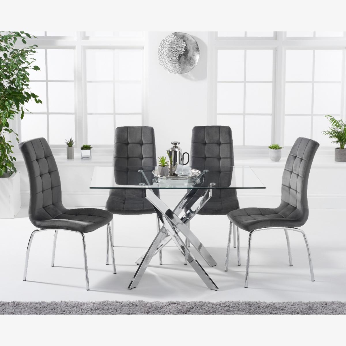 Denver 120cm Rectangular Glass Dining Table With 6 Blue Calgary Velvet Chairs