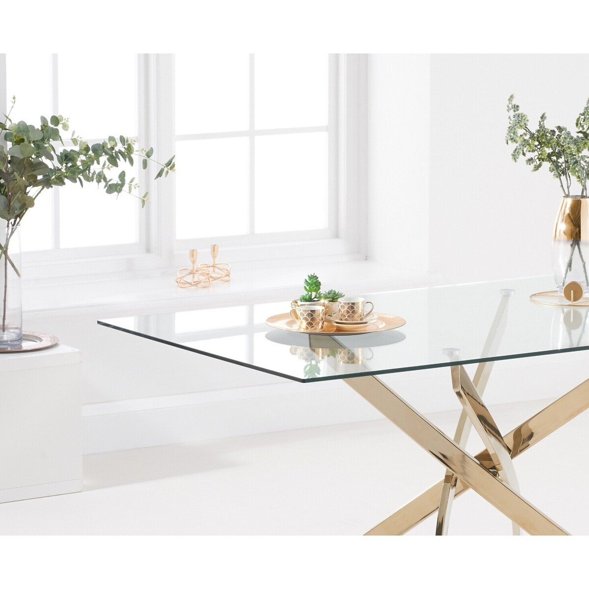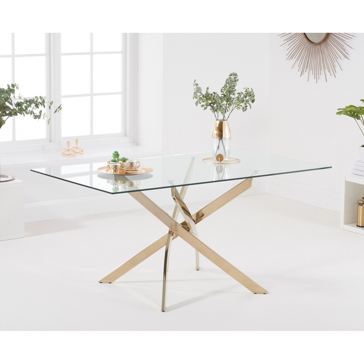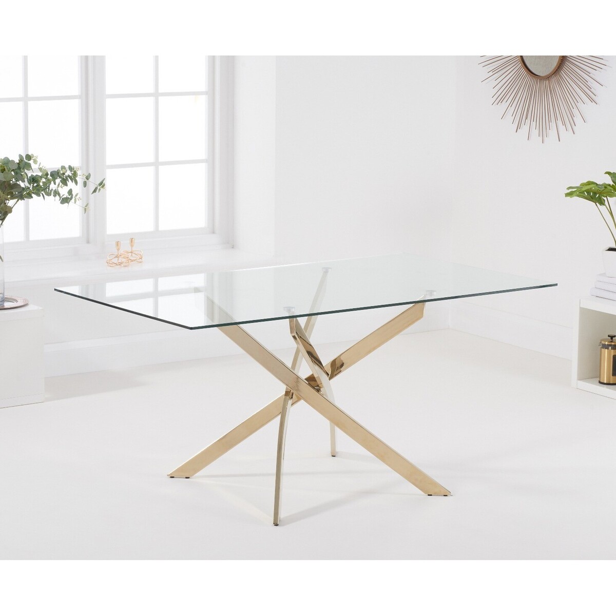 Denver 160cm Rectangular Glass Gold Leg Dining Table