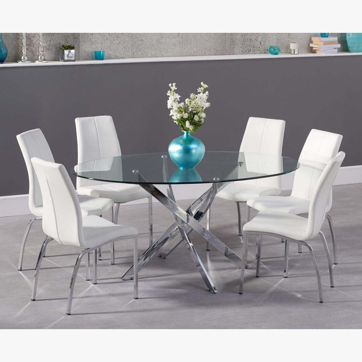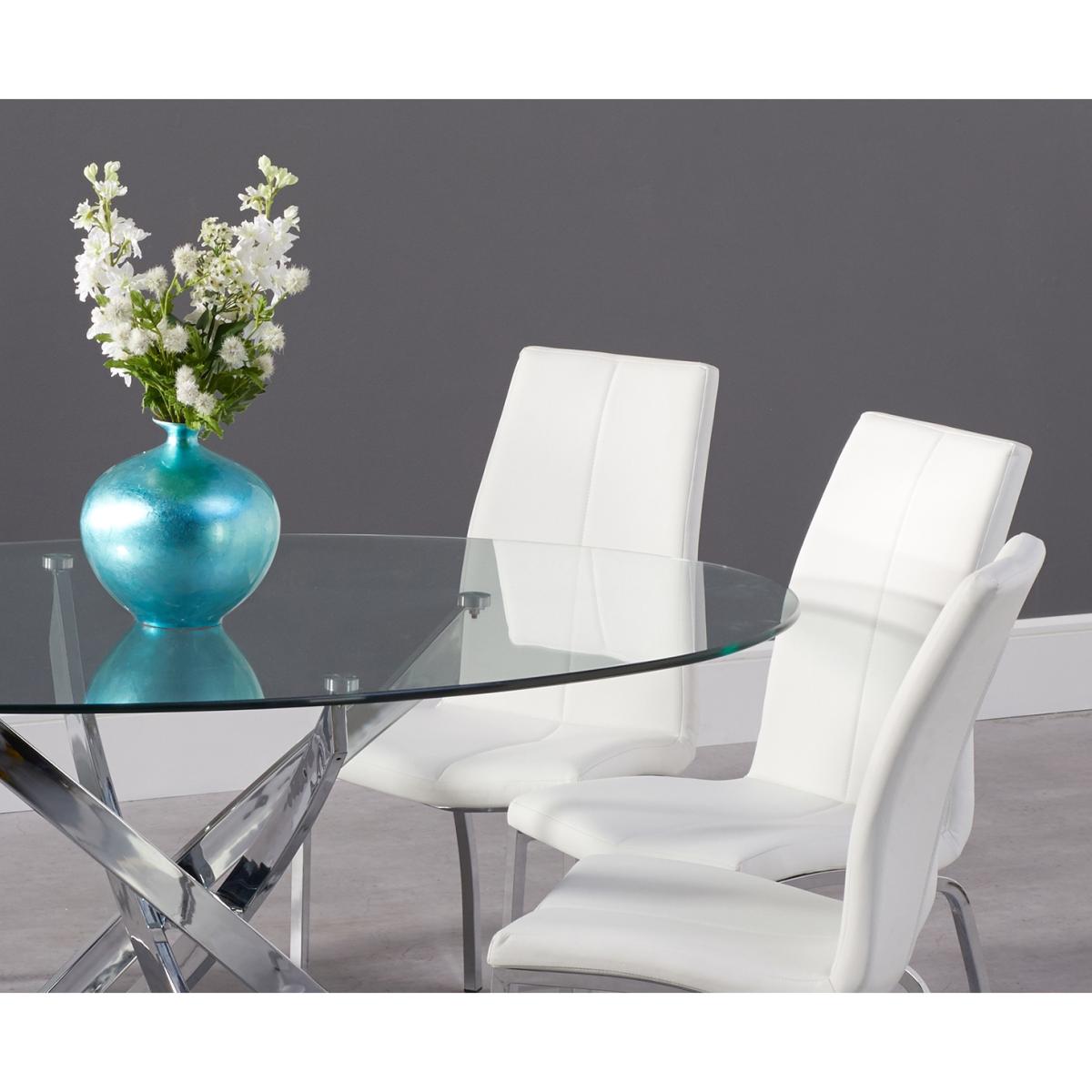 Denver 165cm Oval Glass Dining Table With 4 Ivory White Cavello Chairs