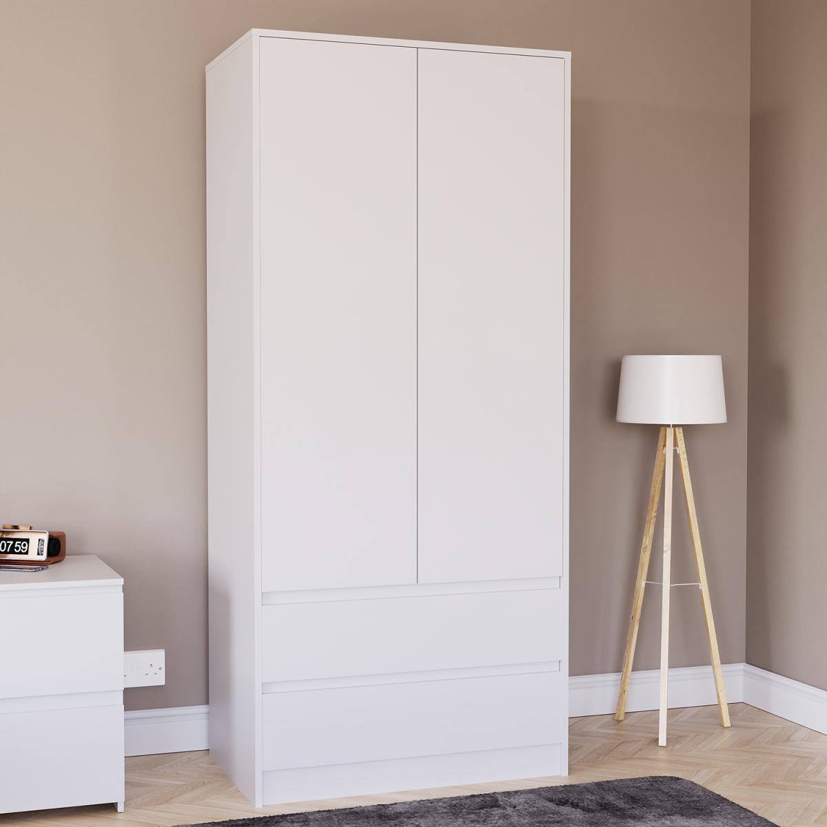 Introducing our sleek and modern Denver 2-Door Wardrobe with 2 Drawersa perfect fusion of functionality and minimalist design. Elevate your bedroom with this contemporary wardrobe, featuring a handle-free design for a seamless and clean aesthetic. Organization is made effortless with the internal hanging rail, providing ample space for your clothes to hang neatly. Two spacious drawers at the bottom add a practical touch, offering convenient storage for smaller items and accessories. The wardrobe's thoughtful design ensures that your belongings are not only easily accessible but also beautifully displayed.
