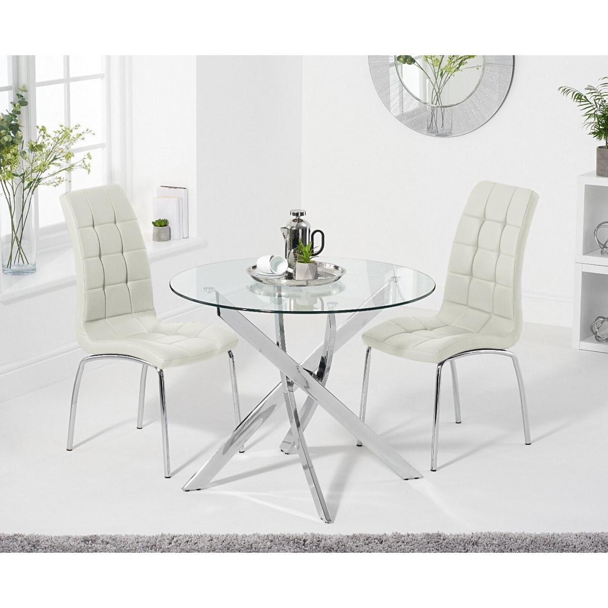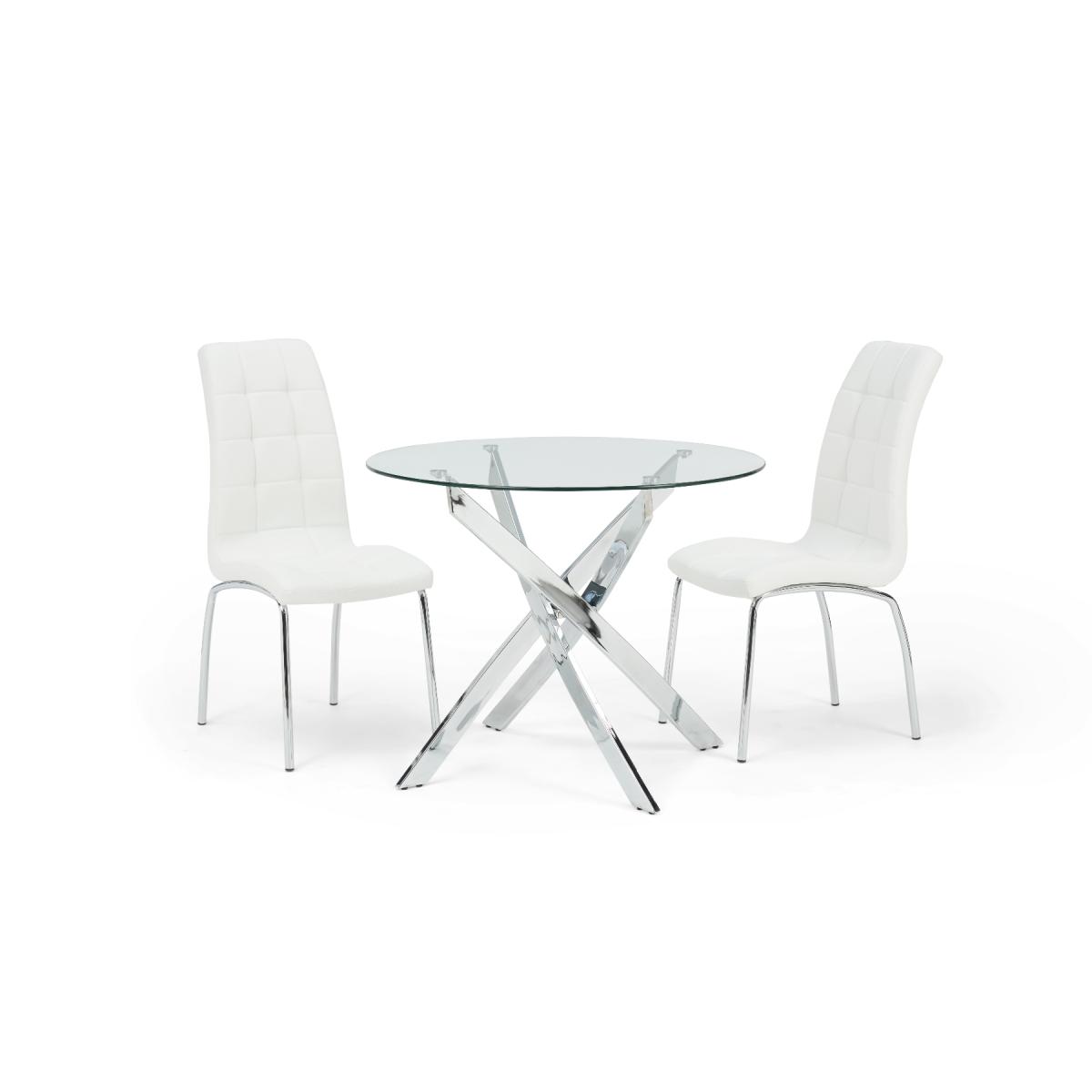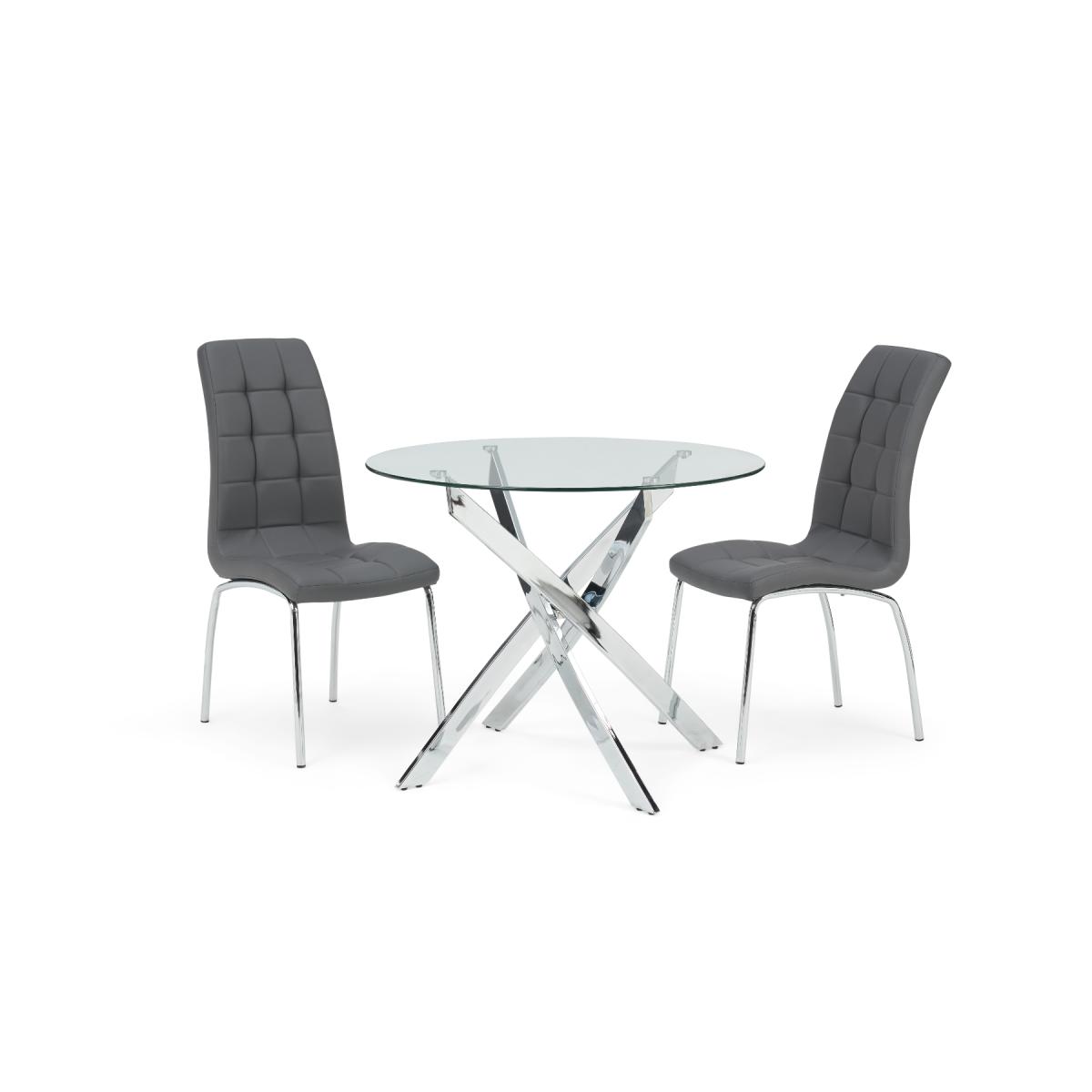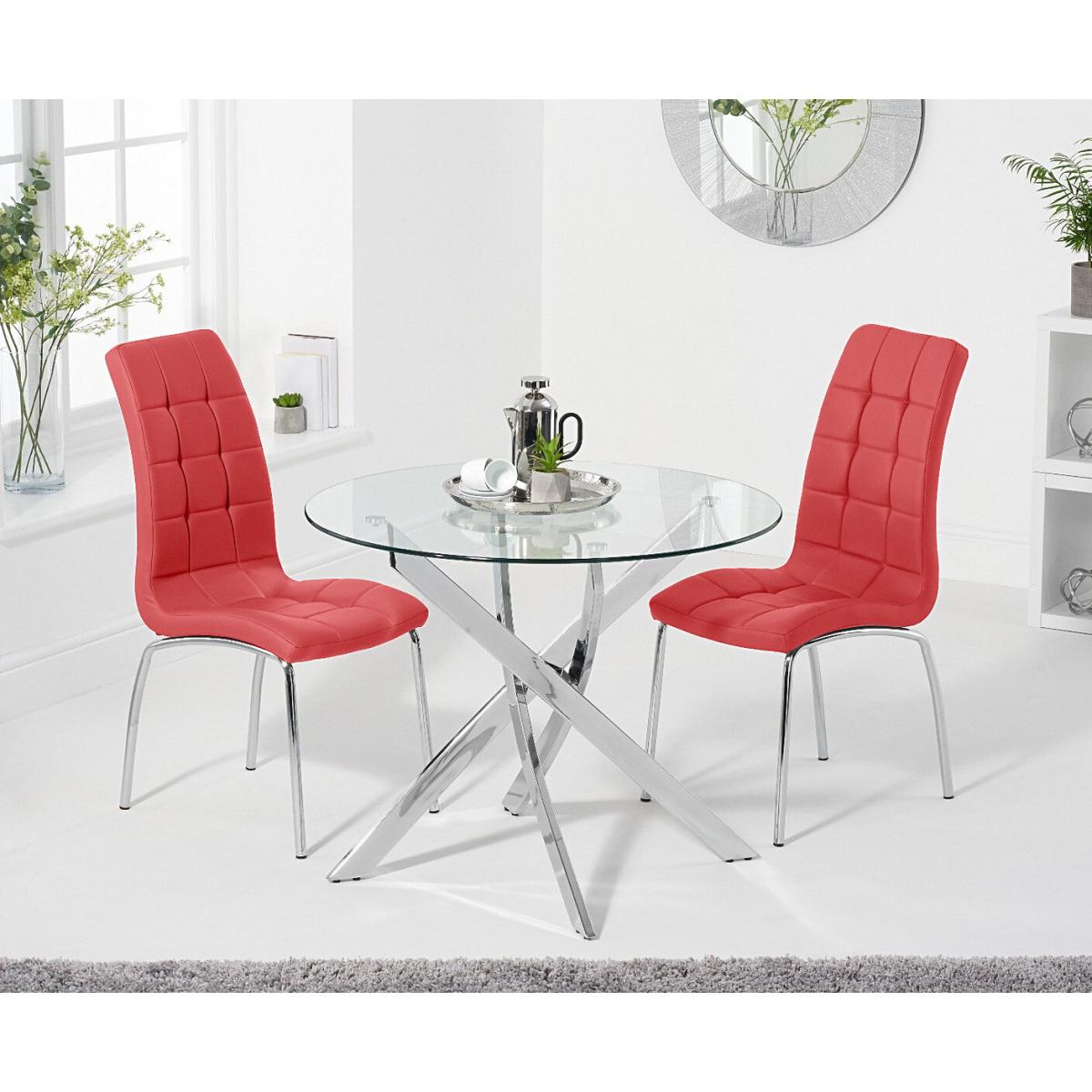 Denver 95cm Round Glass Dining Table with 2 Red Enzo Chairs