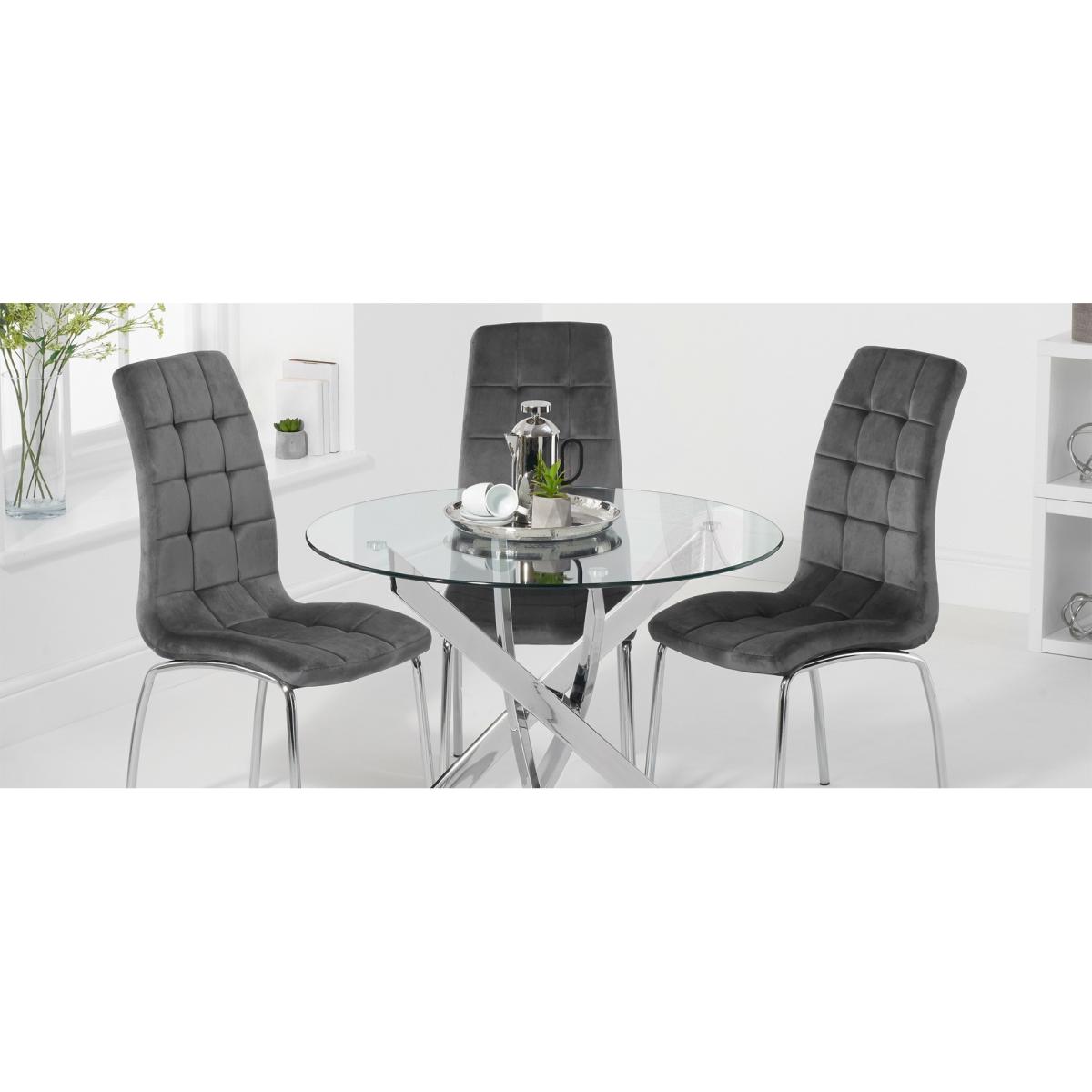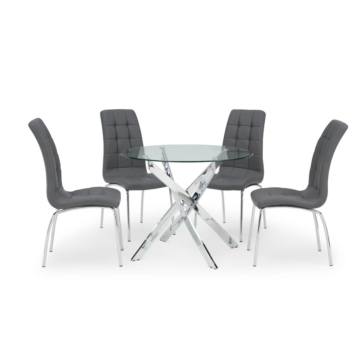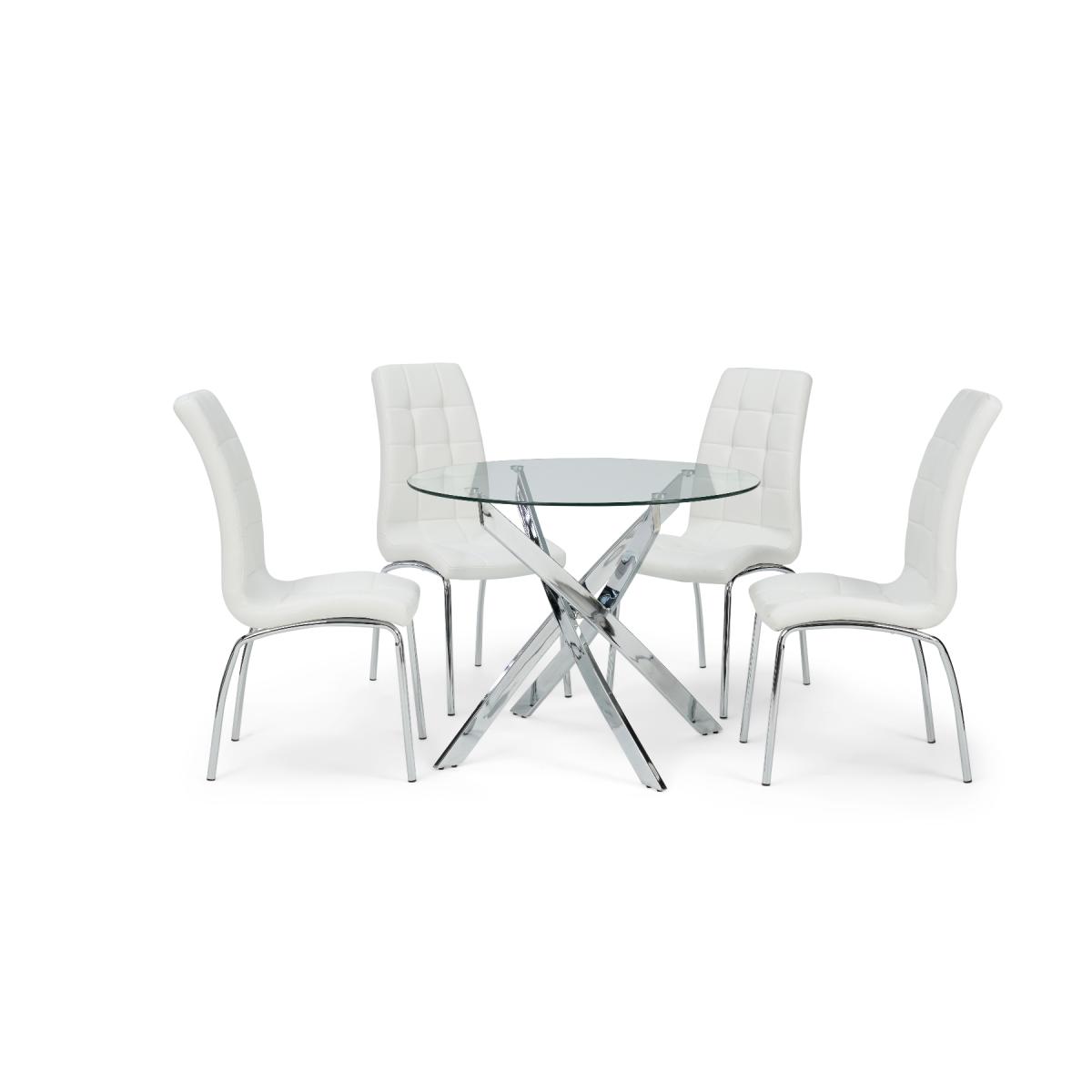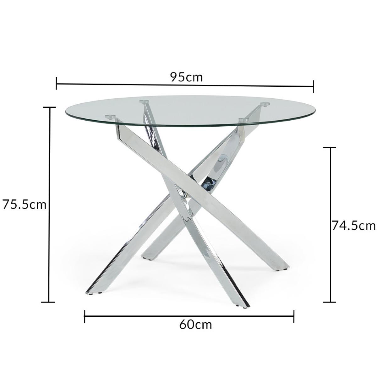 This dining set is a sleek choice for modern interiors, pairing the round glass table with clean lines and a contemporary feel. The 95cm size works well in smaller or open-plan spaces, making it versatile without feeling bulky. The pop of colour from the red Enzo chairs adds a lively touch, perfect for injecting personality into a neutral scheme or creating a statement in more vibrant décors. Style tips include keeping accessories minimal on the table to highlight its transparency, and complementing the red with other colour pops through cushions or artwork. It's equally suited to kitchen dining areas or more formal dining rooms integrated into a contemporary living space. Practicality-wise, the glass surface is easy to clean, and the bold chairs provide comfortable seating with visual impact.