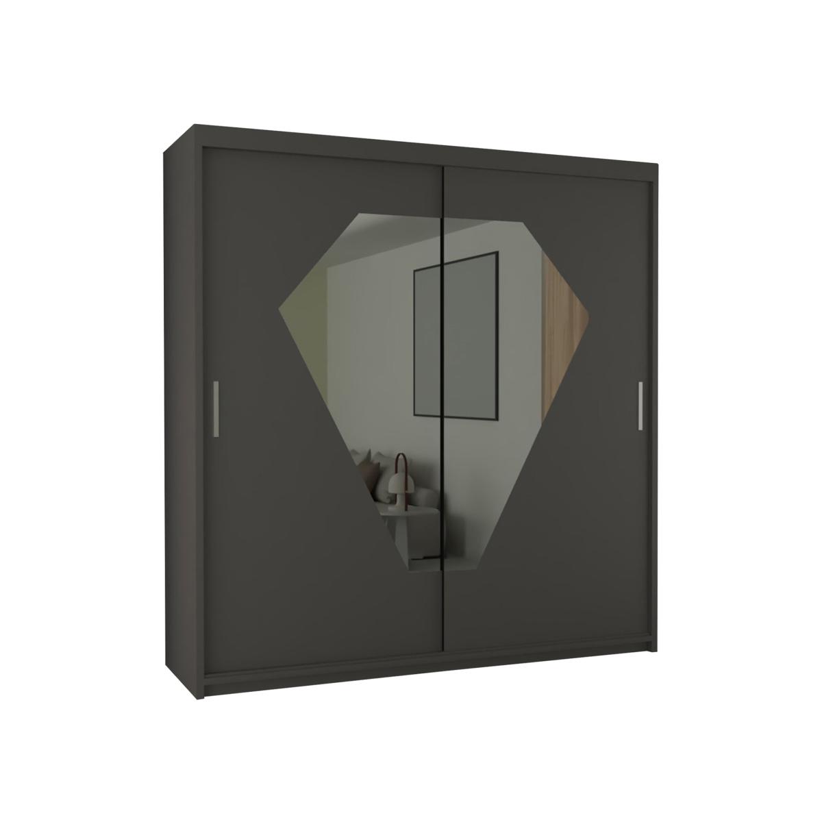 Denver Diamond Mirror Sliding Wardrobe - Grey / 203cm