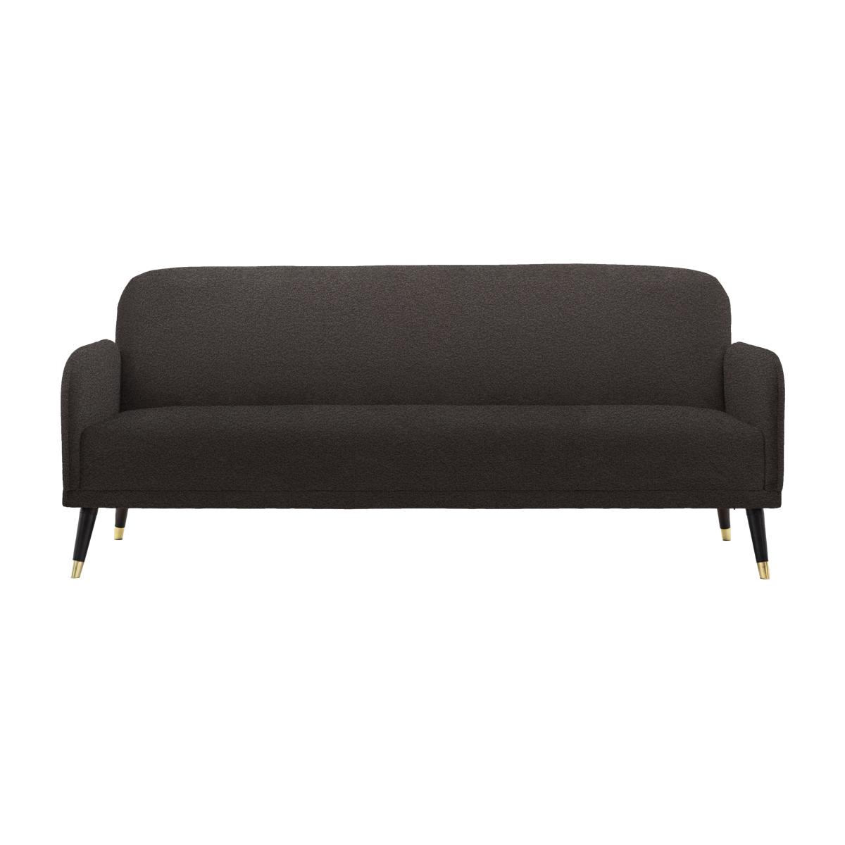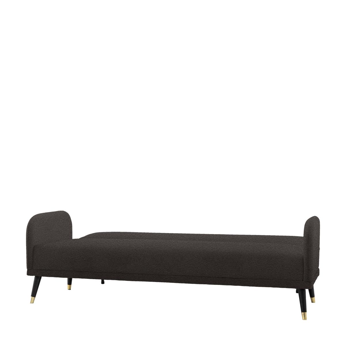 * Modern Sofa Bed* Easy to Transform* Curved Ends This stylish sofa bed offers contemporary design with its gently curved back ends and slim arms, creating a sleek silhouette. The back quickly and simply folds down to create a comfortable bed, perfect for accommodating overnight guests. Upholstered in a soft fabric, it adds a touch of sophistication and comfort to your space.