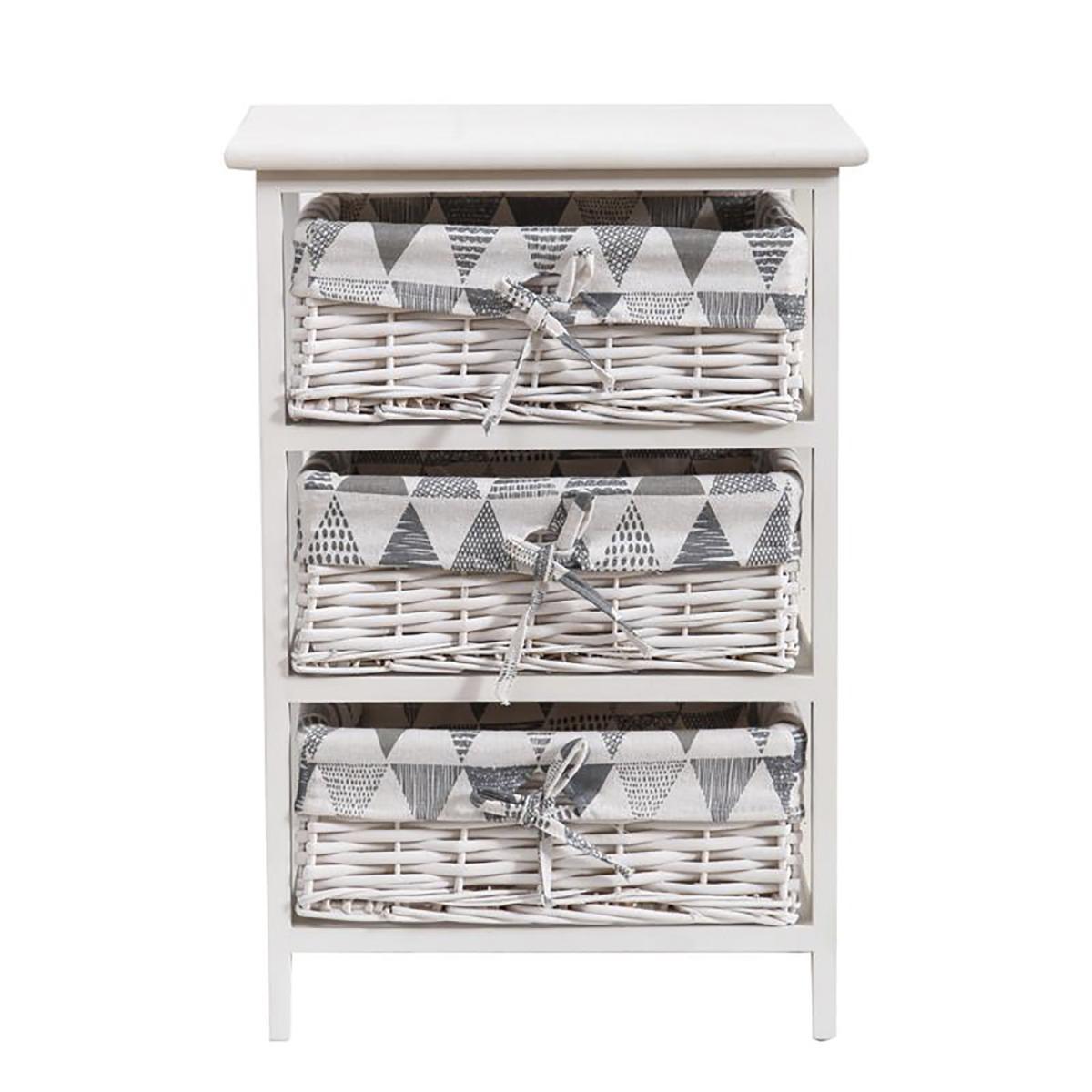 Store your belongings away neatly in this Denver Geo 3 Basket Storage Tower, finished in fresh white with a fabric-lined wicker basket in each of its three shelves. Perfect for your bedroom, bathroom, or hallway, this storage unit will help to keep your space tidy while adding a shabby chic and nautical-inspired element to your home furnishings.