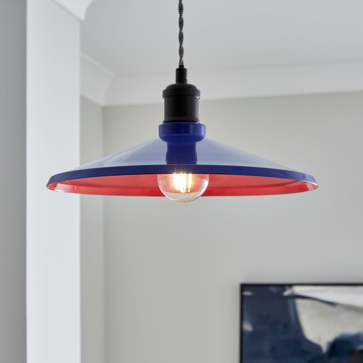 I love this pendant shade for its bold, retro-inspired design, which makes it a statement piece without overwhelming the space. Its shallow profile works particularly well in open-plan kitchens or dining areas where you want to add a splash of colour and a touch of personality. It pairs effortlessly with a variety of interior styles, from contemporary and industrial to eclectic, and can be complemented with vintage or modern accessories. For a practical styling tip, consider hanging it over a kitchen island or dining table at a height that provides ample task lighting - it’s great for creating a focal point while offering functional illumination. Its versatile colour palette also means it can be mixed with other colour accents in the room for a cohesive look.