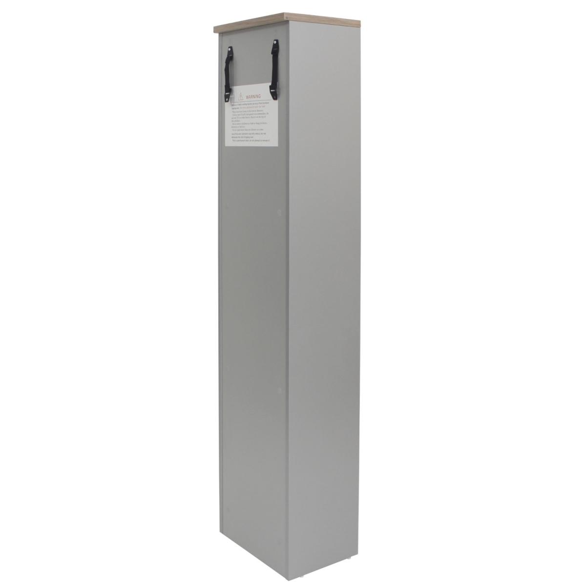 The tall, narrow bookcase in light grey is a practical choice for adding vertical storage without overwhelming a space. I love its sleek, minimalist design, which makes it versatile enough to work well in both modern and contemporary interiors. It's ideal for small rooms or tight corners, providing ample room for books, files, or decorative objects while maintaining a clean look. For styling, consider grouping items by colour or shape to create visual interest, and use baskets or boxes on the lower shelves for added organisation. Pairing it with other monochromatic or neutral-toned furniture can help keep the space feeling open and airy.