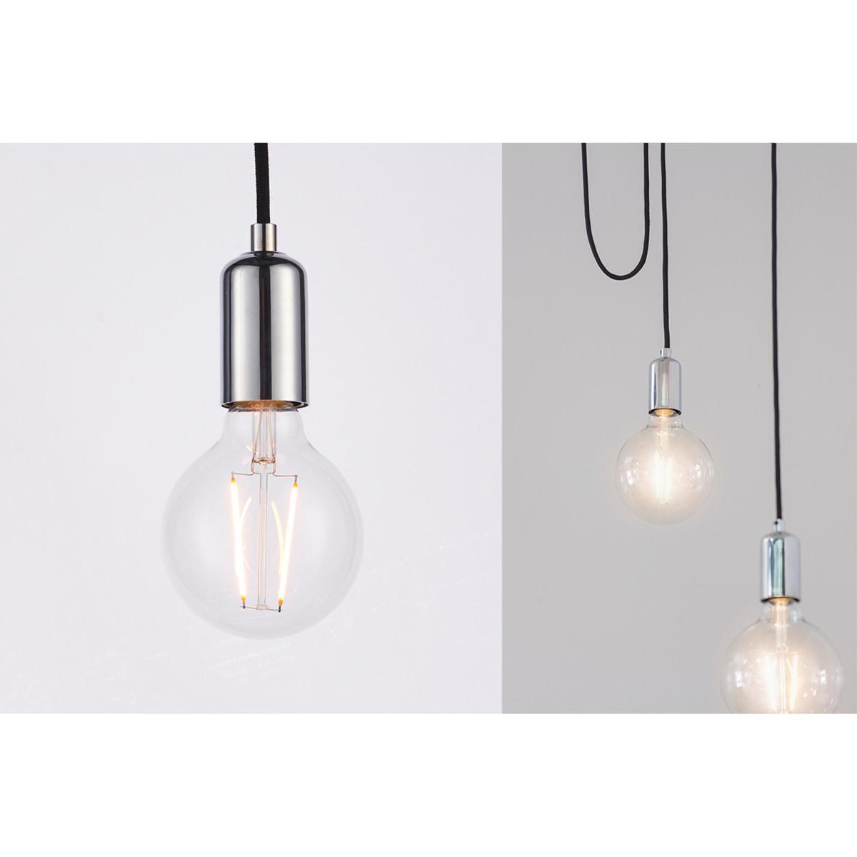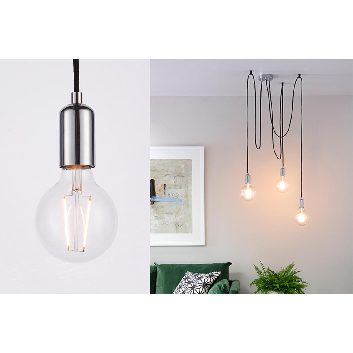 For a touch of industrial charm, choose the Deo 3 Light Multi-Pendant. Ideal to complete the look of a contemporary home study or office, the Deo range is as hardworking and industrious as you are! Simple in construction with dimmable smooth chrome plated lamp holders suspended from height adjustable black fabric flex, select the position of each lamp, able to reach over a large area of your interior for perfect illumination.