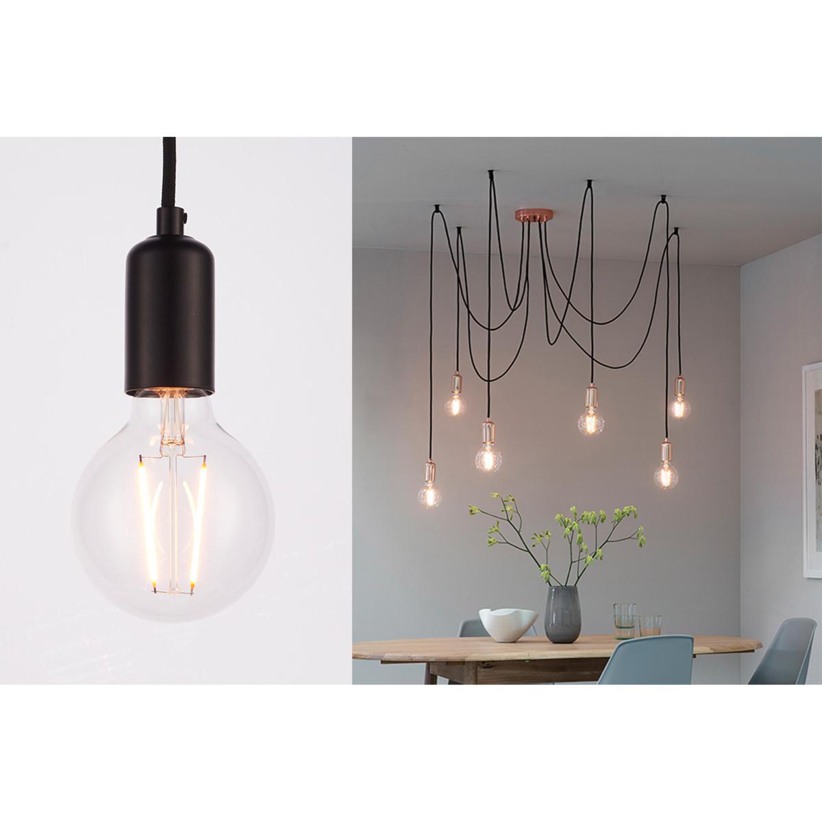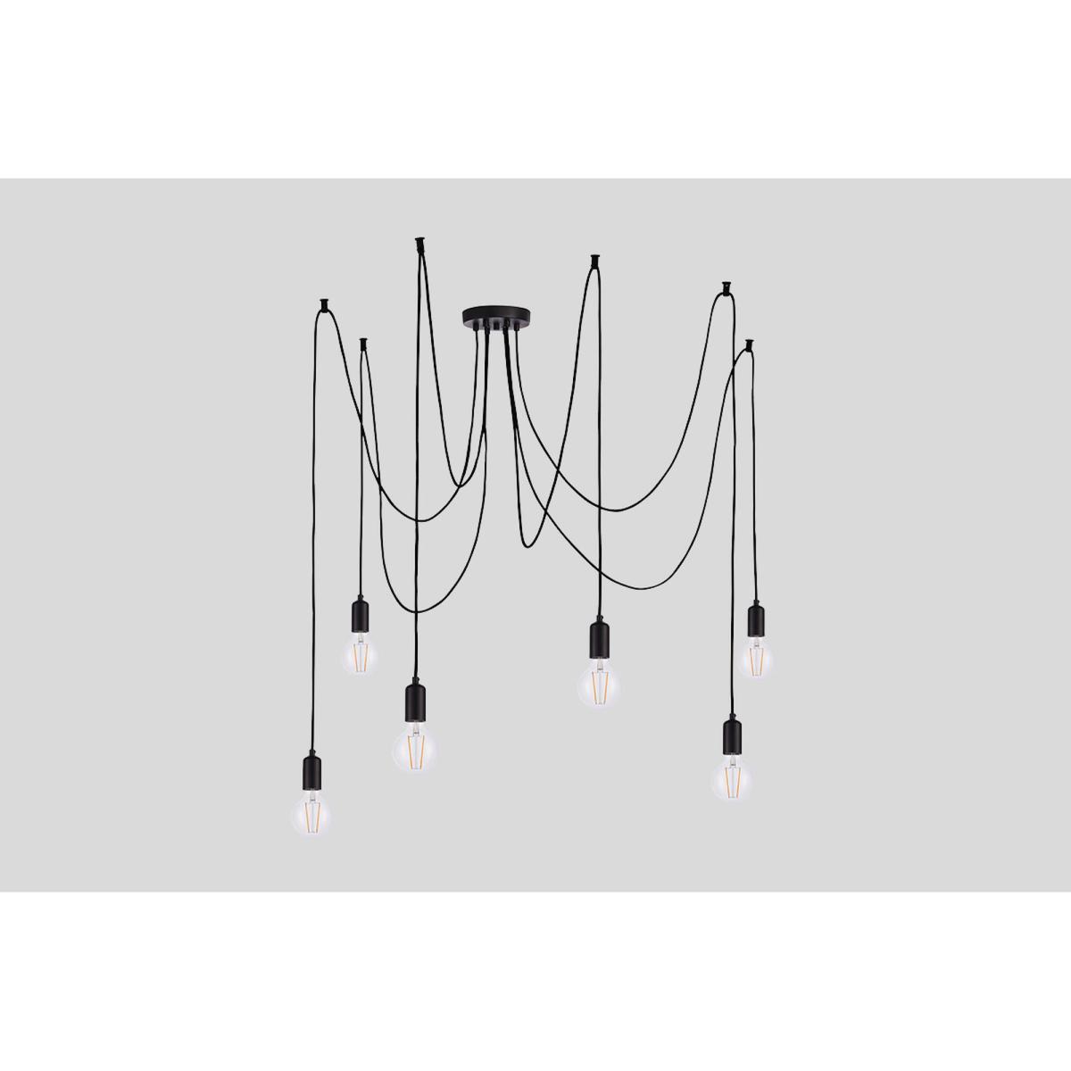 For a touch of industrial charm, choose the Deo 6 Light Multi-Pendant. Ideal to complete the look of a contemporary home study or office, the Deo range is as hardworking and industrious as you are! Simple in construction with dimmable smooth matte black painted lamp holders suspended from height adjustable black fabric flex, select the position of each lamp, able to reach over a large area of your interior for perfect illumination.