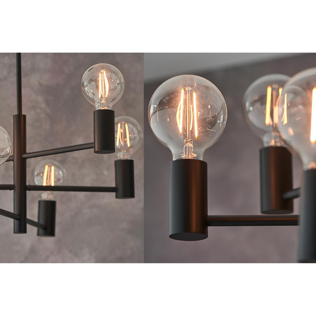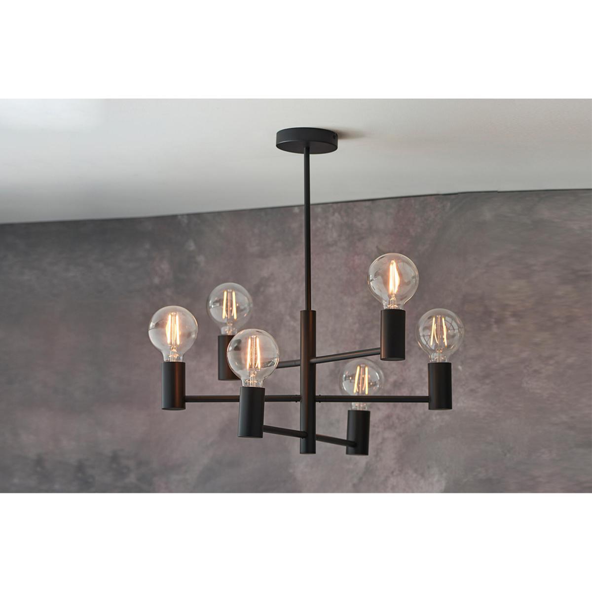 For a touch of industrial charm, choose the Deo Chandelier. Its clean-line smart matte black look combined of 6 branches adds a touch of modernity to any room. Ideal to complete the look of a contemporary home study or office, the Deo range is as hardworking and industrious as you are! Dimmable and perfect when paired with LED filament lamps for that essential, on-trend look.