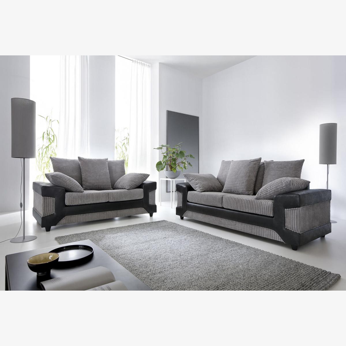 Derby Jumbo Cord 3 and 2 Sofa Set - Black & Grey