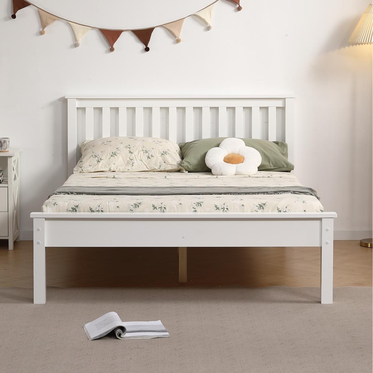 Drift off in timeless elegance with the Derby Solid Wood Bed Frame in a crisp White. Imagine this versatile bed adding a touch of classic charm to your bedroom blending beautifully with any style you love. Crafted from lovely sustainable pine wood its not just comfortable but also a thoughtful choice for your home. Youll sleep soundly on the supportive frame and the clever slatted design helps keep you cool and cozy all night long. Plus the fresh white finish is easy to care for and stays looking great. Make your bedroom a peaceful haven with the Derby Bed Frame where beautiful design meets everyday comfort and a touch of nature.