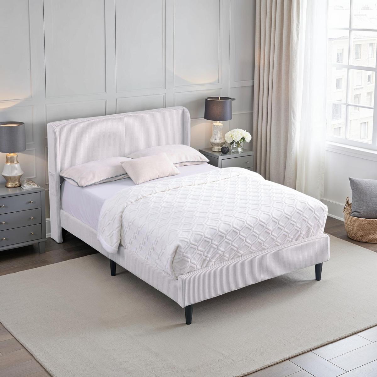 Dereham Cord Fabric Winged Bed Frame - Ivory / King