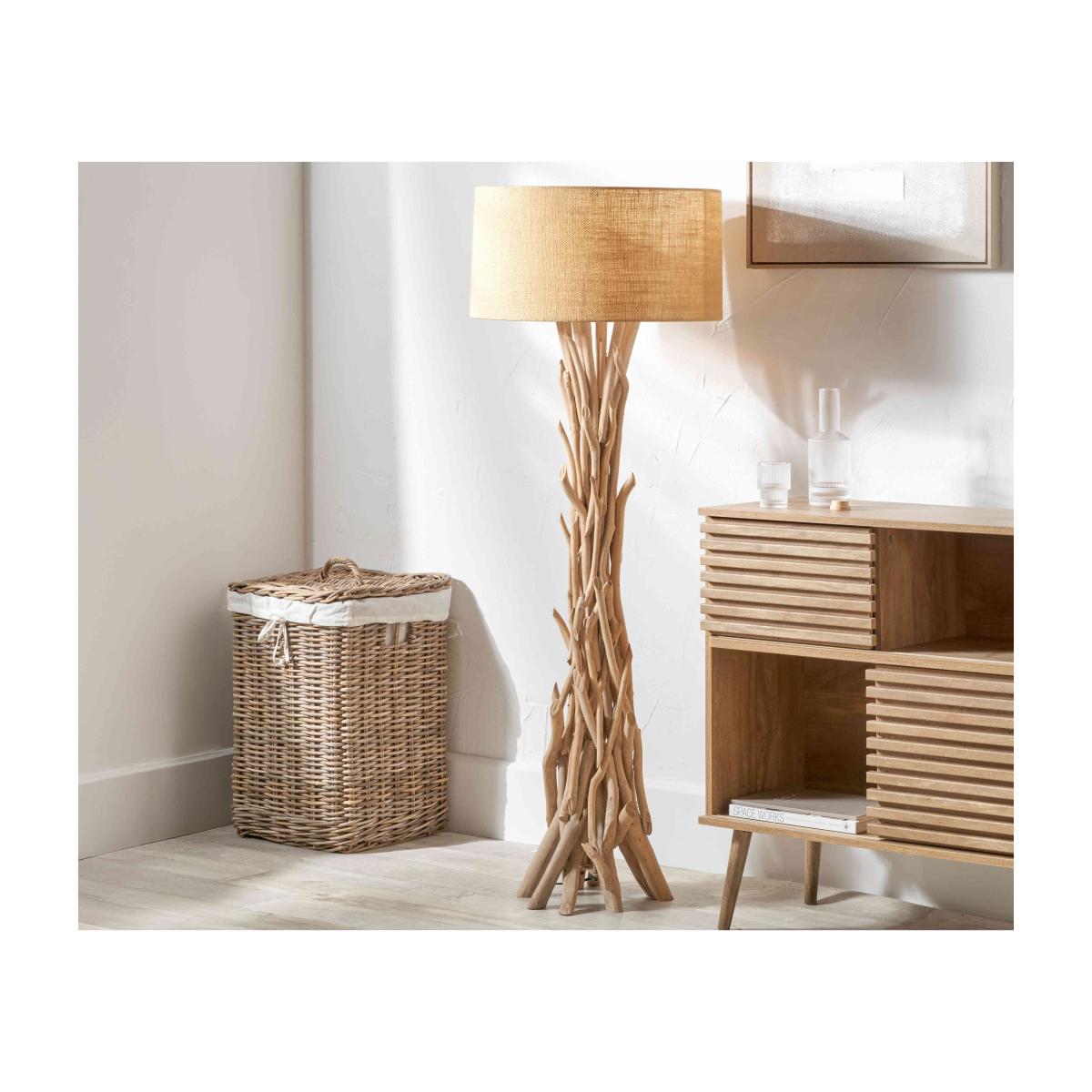 The beautiful beachcomber-inspired Derna floor lamp adds an organic touch to contemporary decor. Its natural colours and design evokes memories of dreamy days by the coast. Why you'll love it Brings the best of the outdoors inside. Interweaved branches form a real tree trunk appearance. Driftwood base and a natural jute lampshade. Creates a cosy and warm atmosphere. Also available as a table lamp. What you need to know Driftwood base. Lamp shade included. Requires 1 x LED E27 max. 12W bulb, not included. Supplied with 200 cm of cable. Dust with a soft, clean, lint-free cloth. Dimensions Height: 151 cm (60 in). Width: 54 cm (22 in). Depth: 54 cm (22 in).