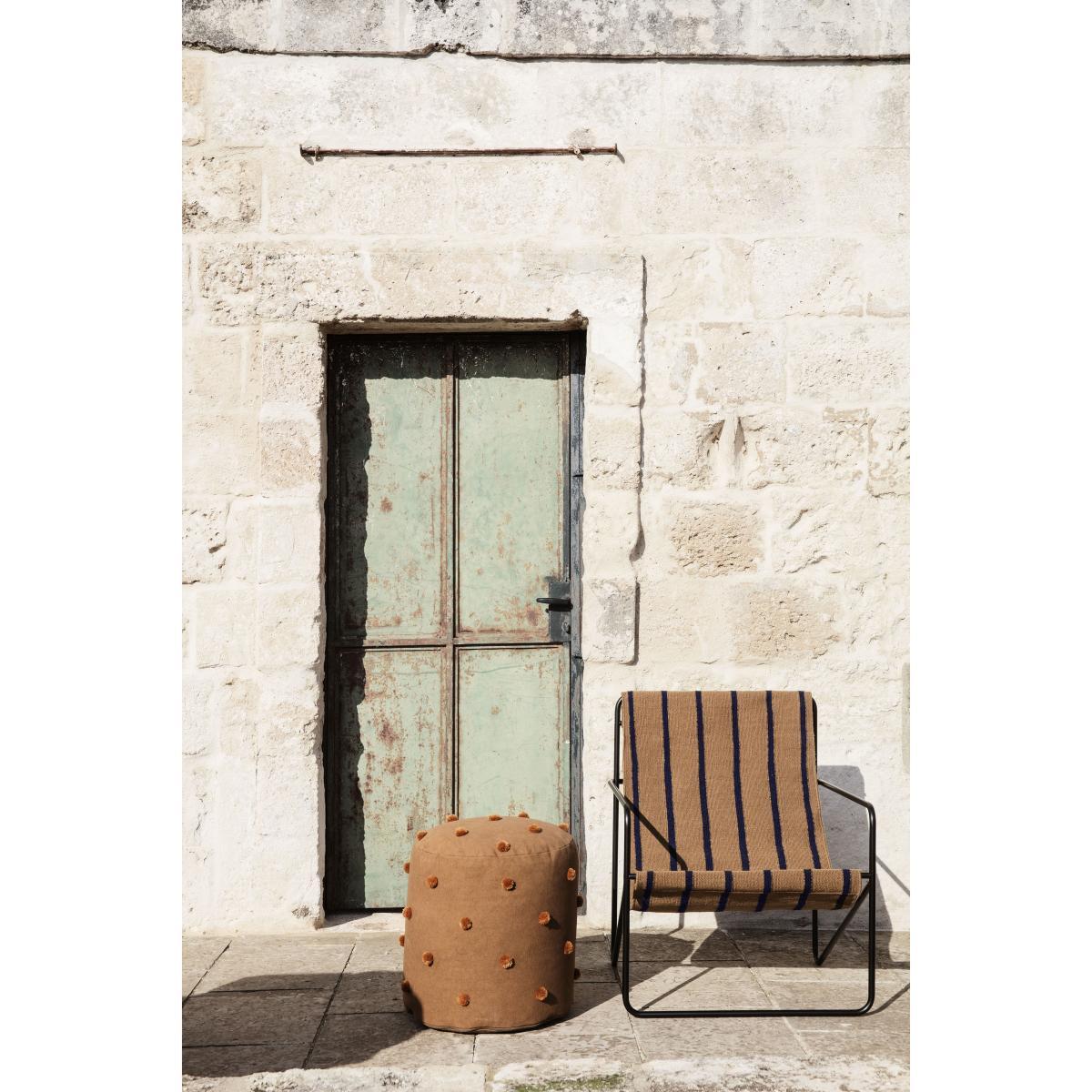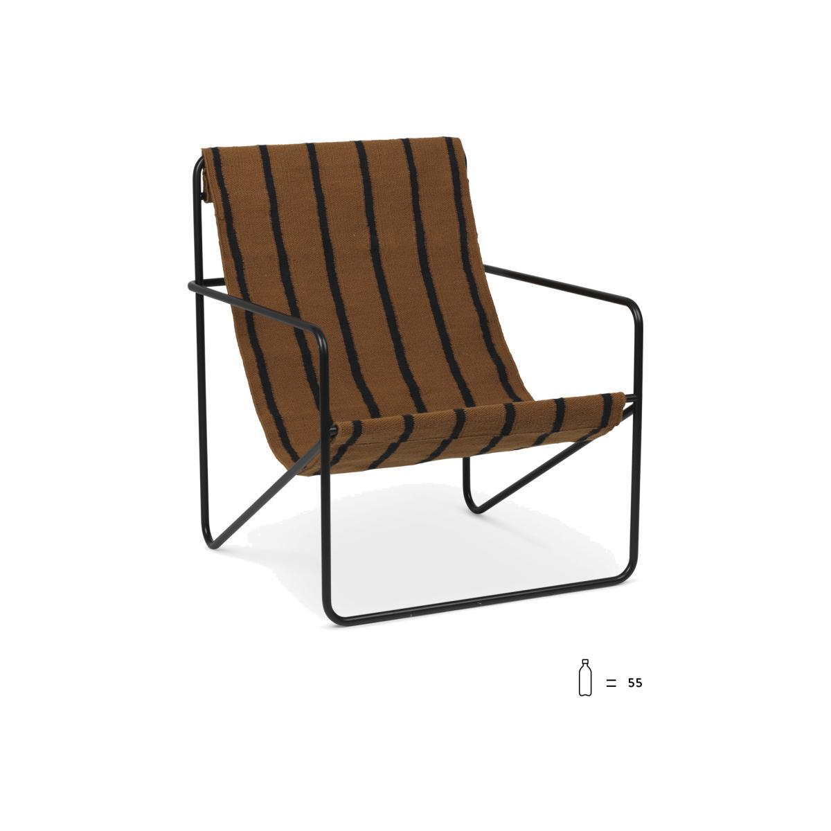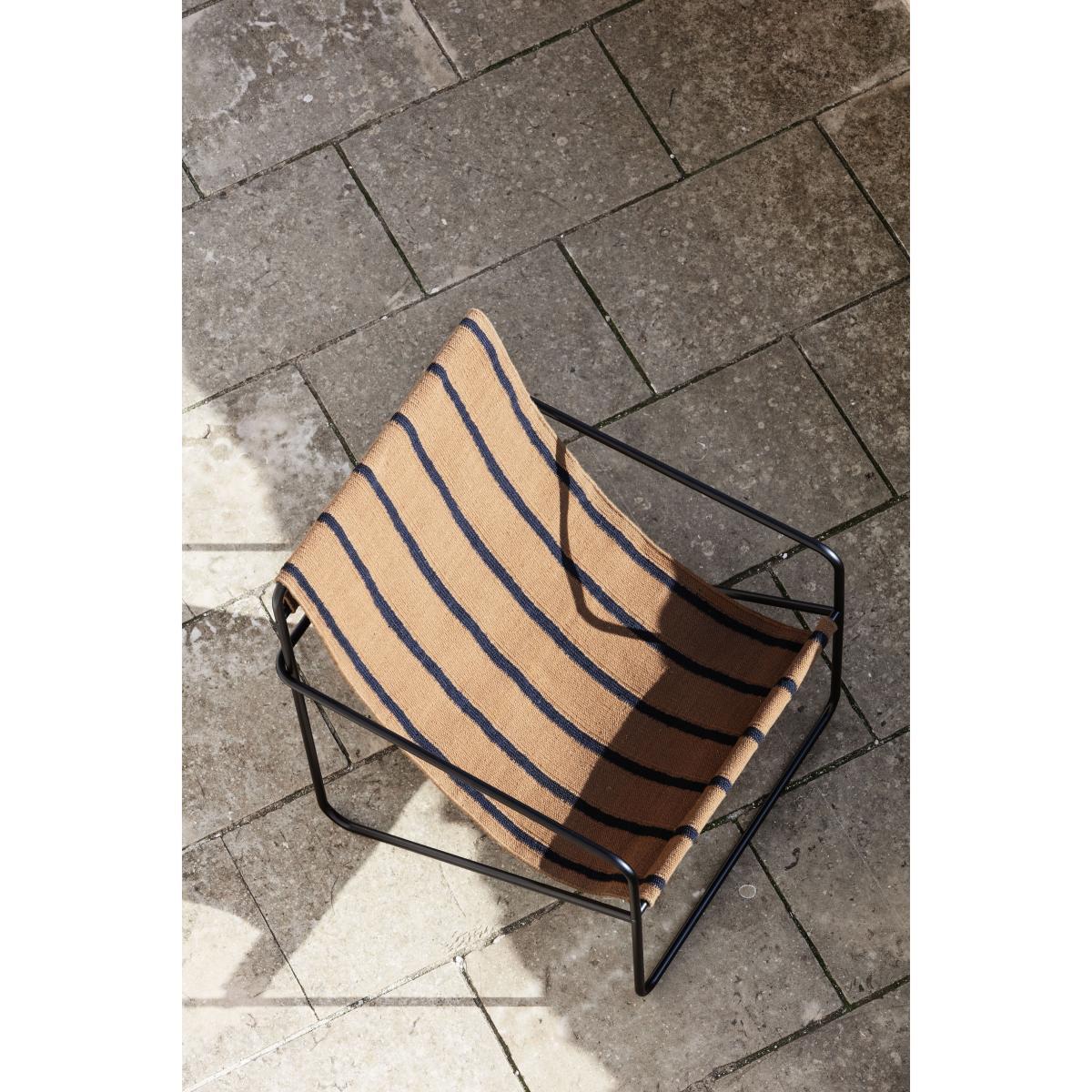 This modernist-inspired armchair has an aerial silhouette with clear geometric lines. The Desert armchair is made up of a thin tubular steel structure from which hangs a seat in flexible, comfortable canvas, decorated with stylised patterns. The classic style with its modernist accents receives a twist with the modernity of the patterns. Eco-designed, the hand-woven canvas is made from recycled plastic bottles. Interchangeable, this fabric is easy to maintain (washable at 30°). Weather-resistant, the Desert armchair is as comfortable in a living room as on a terrace. A true invitation to relaxation, the flexibility of the fabric as well as the enveloping shape of the armchair leave plenty of room for comfort!.