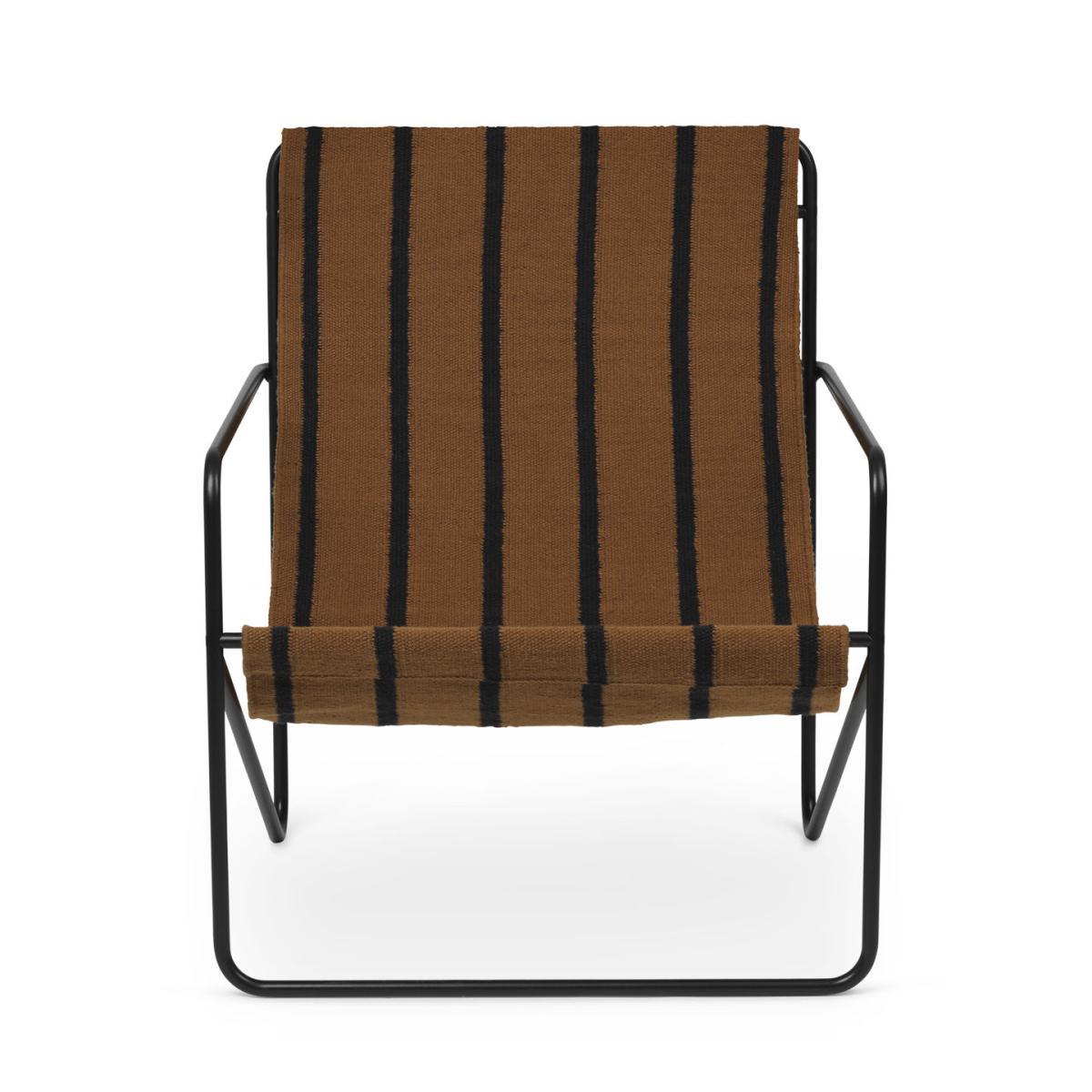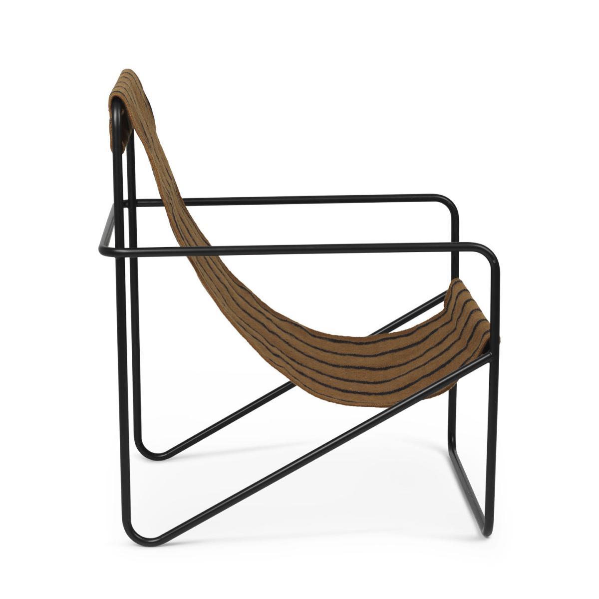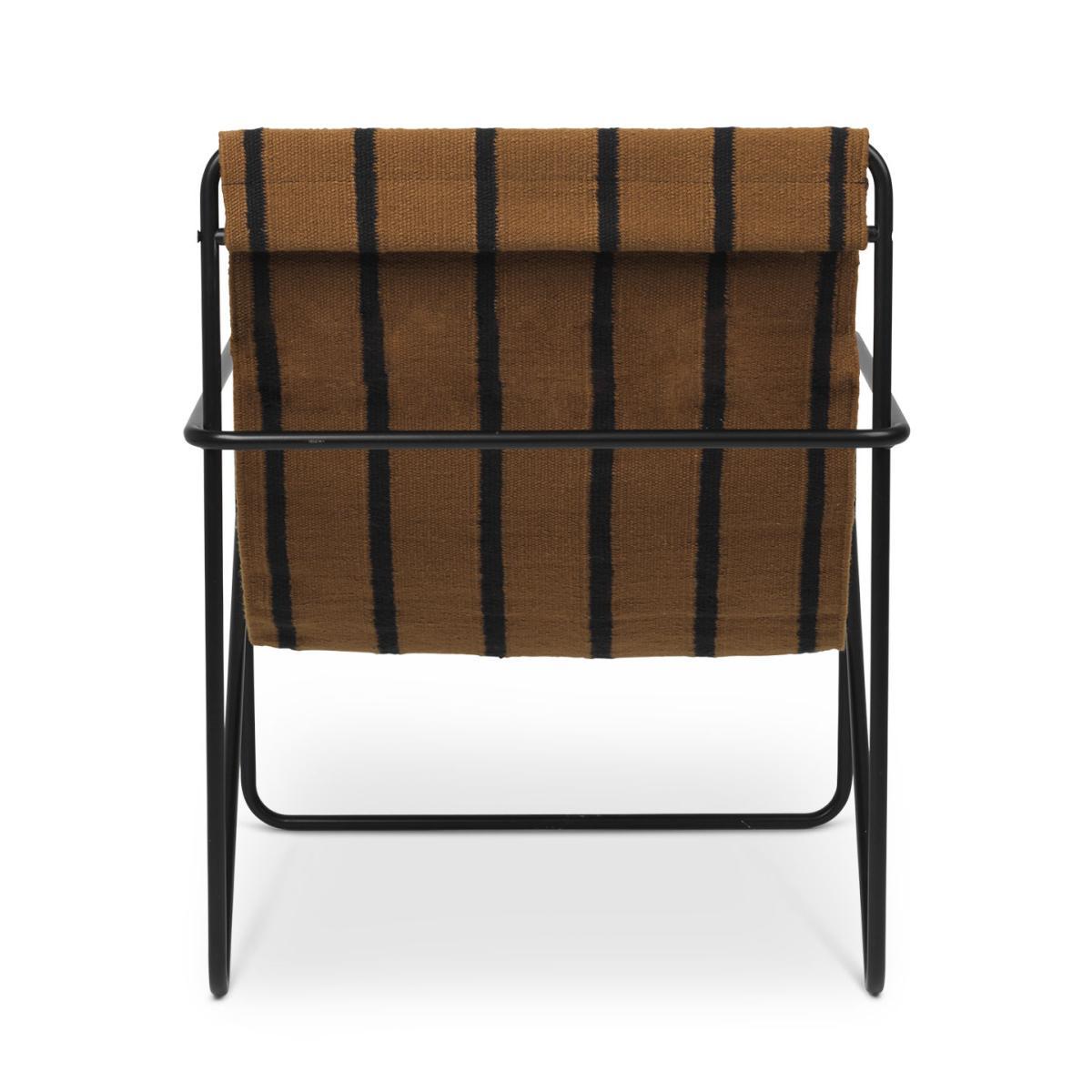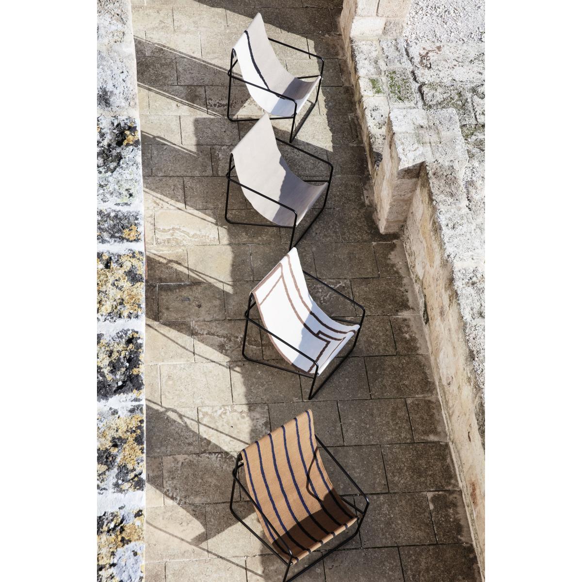 This modernist-inspired armchair has an aerial silhouette with clear geometric lines. The Desert armchair is made up of a thin tubular steel structure from which hangs a seat in flexible, comfortable canvas, decorated with stylised patterns. The classic style with its modernist accents receives a twist with the modernity of the patterns. Eco-designed, the hand-woven canvas is made from recycled plastic bottles. Interchangeable, this fabric is easy to maintain (washable at 30°). Weather-resistant, the Desert armchair is as comfortable in a living room as on a terrace. A true invitation to relaxation, the flexibility of the fabric as well as the enveloping shape of the armchair leave plenty of room for comfort!.