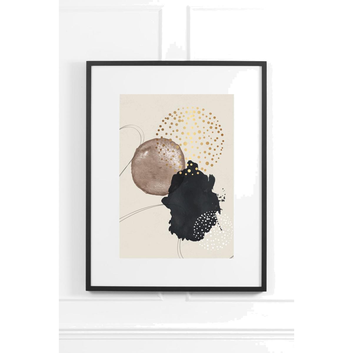 I love the simplicity and modern feel of this piece. Its monochrome palette with subtle gold accents makes it versatile enough for various interior styles, from contemporary to minimalist schemes. The black frame provides a sleek finish that anchors the artwork well, especially in spaces with neutral or monochrome decor. For styling, I’d suggest placing it above a sideboard or sofa to create a focal point, or pairing it with other monochrome prints for a gallery wall. To make it pop, consider positioning it where natural light can catch the frame, highlighting its clean lines and understated elegance.