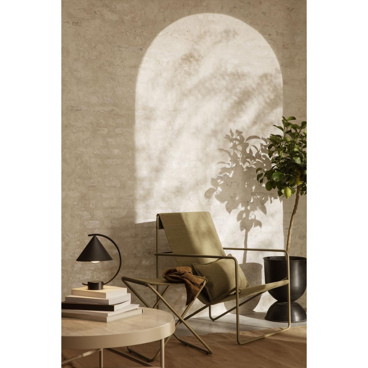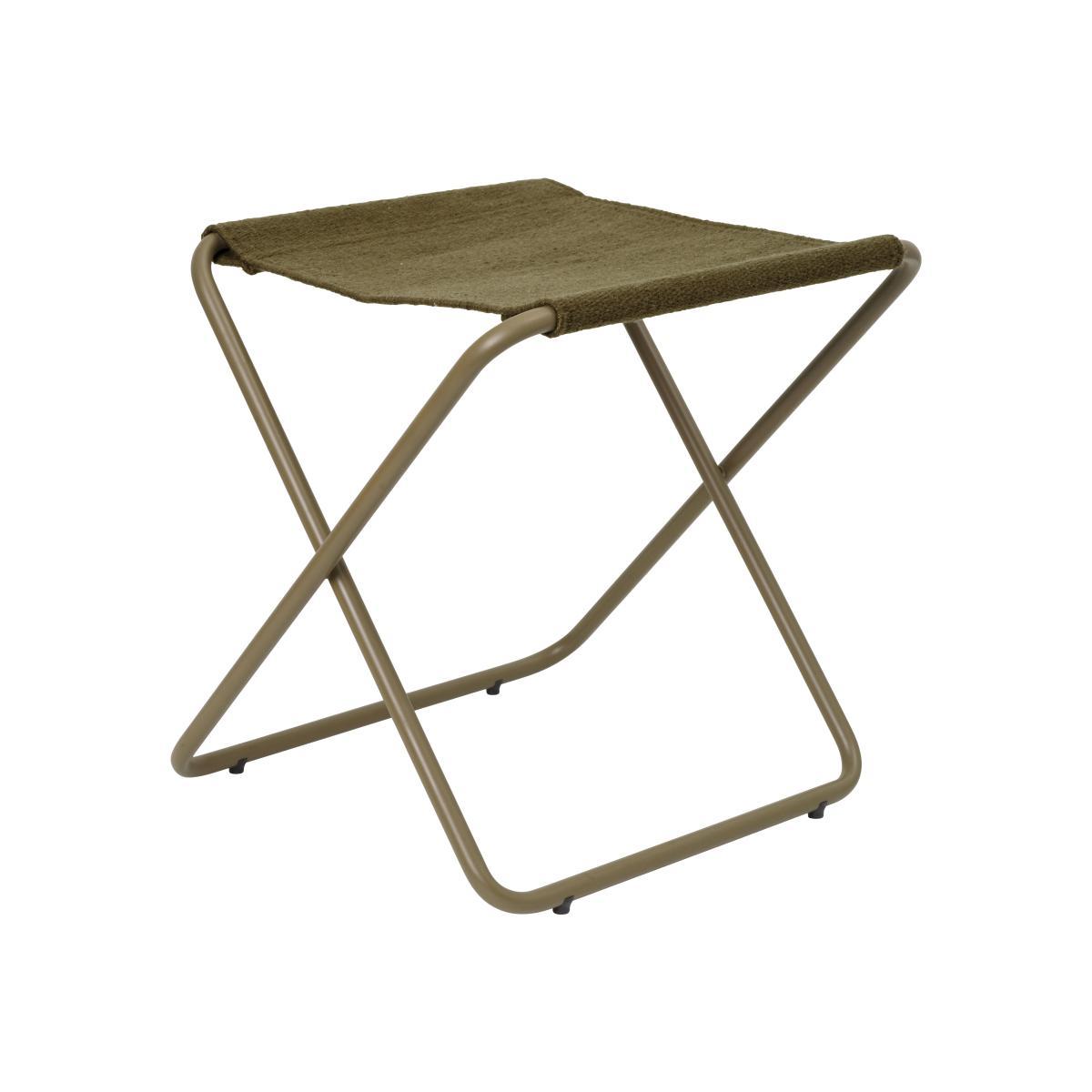 Ferm Living is revisiting the classics and providing us with a modern and elegant version of the traditional outdoor folding stool. This highly practical light stool folds up in no time at all and follows you everywhere: inside, outside, in the garden, at a campsite, on the beach, etc. It can easily be stored when you are not using it. The Desert stool is made up of a thin tubular steel structure from which hangs a seat in a flexible, comfortable fabric, decorated with stylised patterns. The classic style with its modernist accents receives a twist with the modernity of the patterns. The eco-designed fabric comes from post-consumer waste recycling: It is made with 17 recycled plastic bottles! Hand woven, this fabric is extremely durable with a texture which is reminiscent of virgin wool.