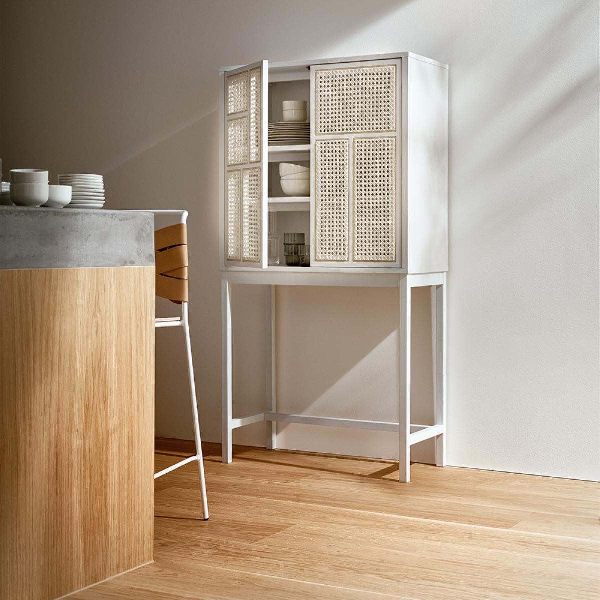 I’m a fan of the Air cabinet for its slender frame and woven-front doors, which bring texture without overwhelming a room. It works equally well in Scandi, minimalist or modern farmhouse interiors, sliding neatly into tight hallways or under low ceilings. For styling, tuck a couple of ceramics and a small plant on top, then arrange books and muted-coloured vessels inside to let the cane panels peek through. Stick to soft neutrals around it, or introduce a single bold accent to make the white finish pop.