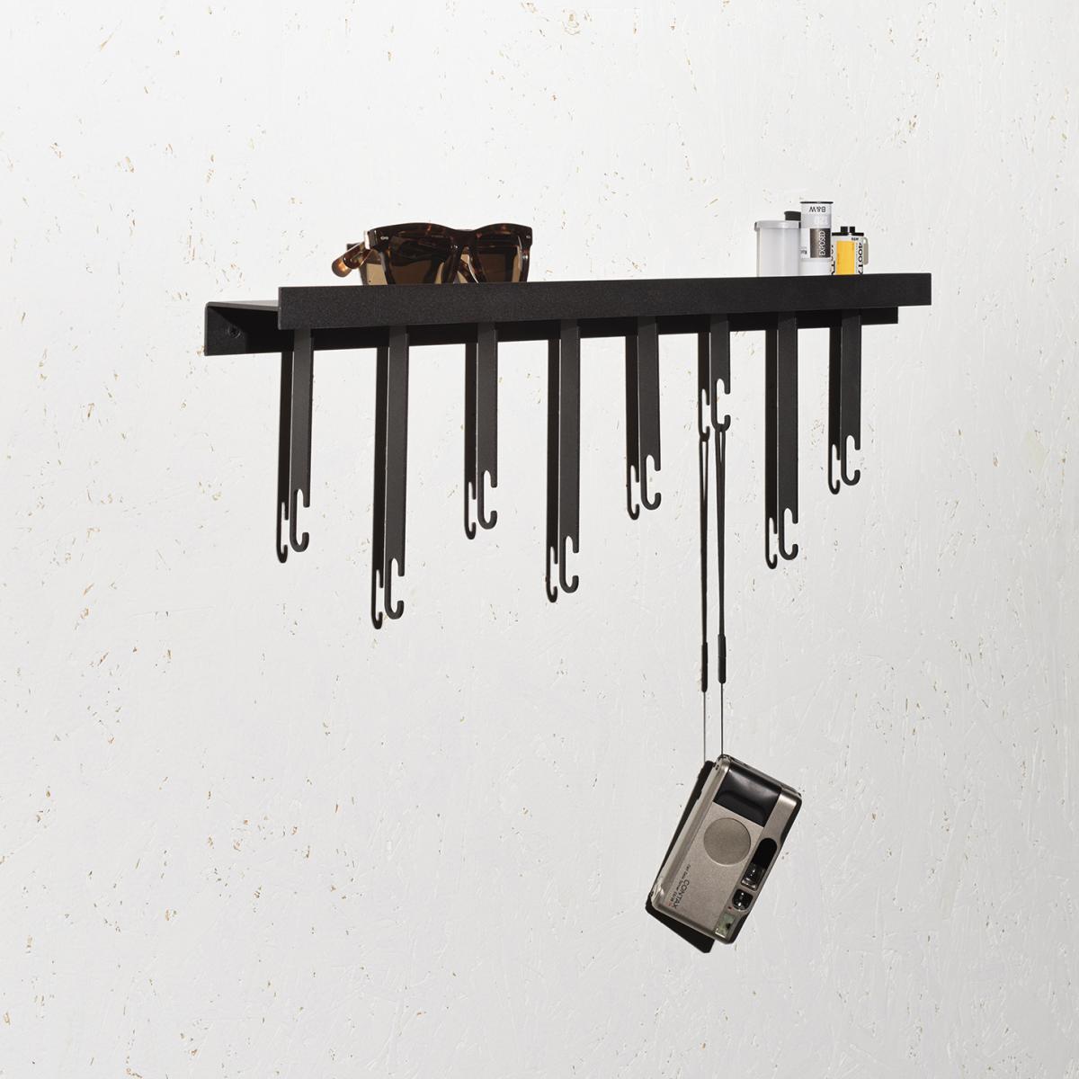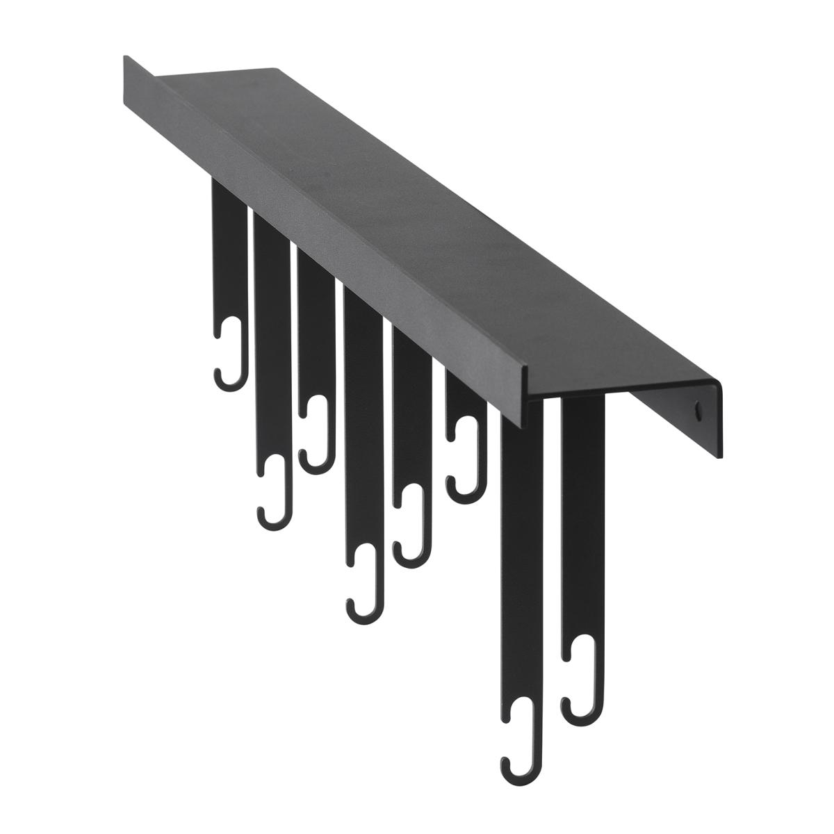 I love the Ateljé hanger in black for its straightforward, industrial-Scandi vibe - it’s a sleek wall-mounted shelf with integrated hooks that works equally well in a hallway, a kitchen or a home office. The matt finish and slim profile keep the look minimal, while the row of eight hooks is perfect for coats, tote bags or oven mitts without overwhelming a small space. For styling, pair it with a few framed prints or a slim potted plant on top, then organise everyday items by colour or texture on the hooks - woven baskets, leather straps or linen aprons add warmth against the metal. Keep the rest of the wall clear to let the hanger’s clean lines stand out, and use matching black fittings for a cohesive finish.