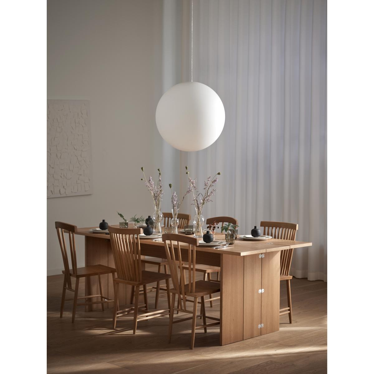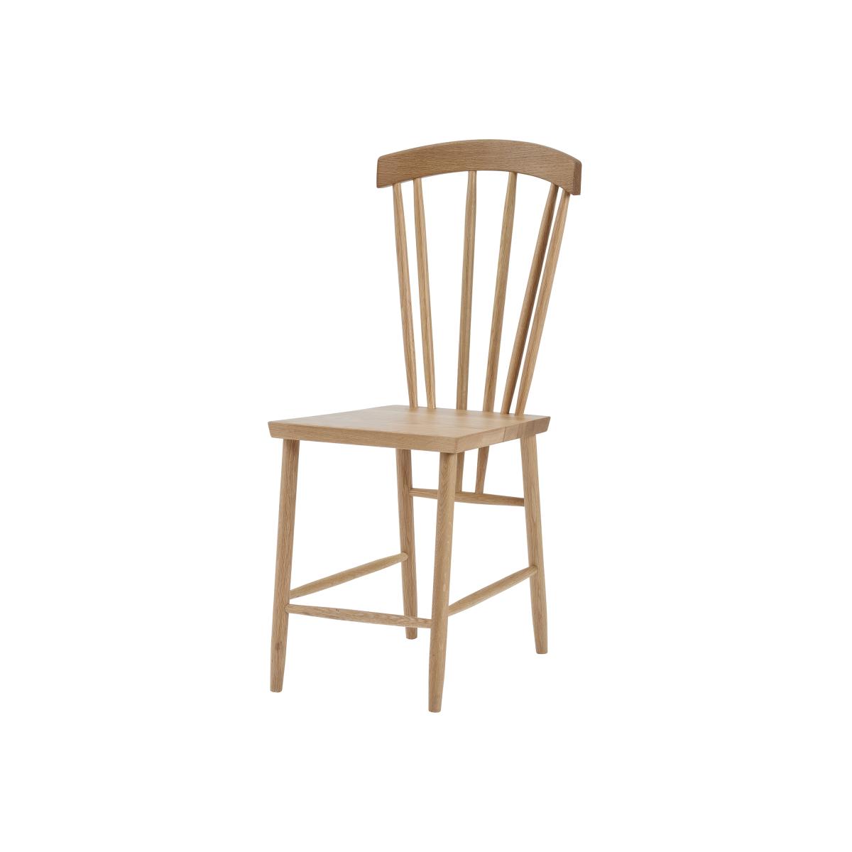 I’m a big fan of the Family Chair in oak for its slender, pared-back silhouette and natural warmth. Its turned-spindle back and light finish make it equally at home in Scandi-inspired kitchens, pared-back dining rooms or modern farmhouse settings. Styling tip: mix it around a simple wooden table or pair with a soft linen cushion to introduce texture. In a neutral scheme, try alternating it with a painted version for a relaxed, collected-over-time feel. A small sheepskin draped over the seat brings extra comfort without overwhelming the clean lines.