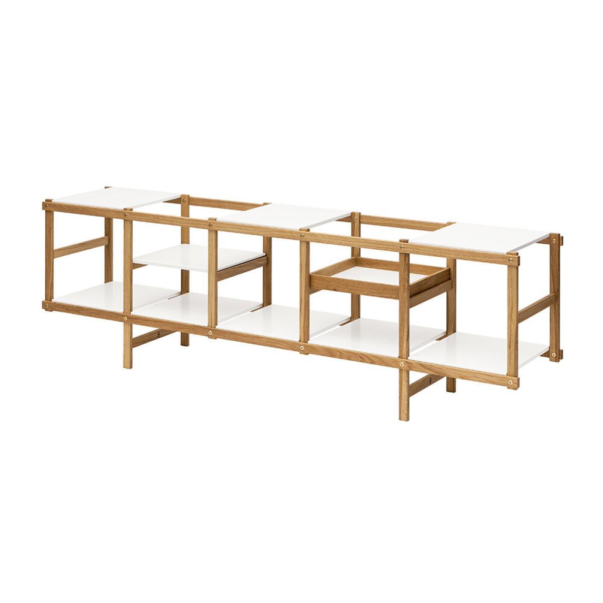 Bring contemporary design to your living space with Design House Stockholm’s modern Frame Shelving unit. Crafted from solid oak, it features white lacquered MDF shelves which contrast beautifully against the natural oak frame. With an open box design, this shelving unit is ideal for storing books and files, alongside displaying your favourite ornaments and keepsakes.