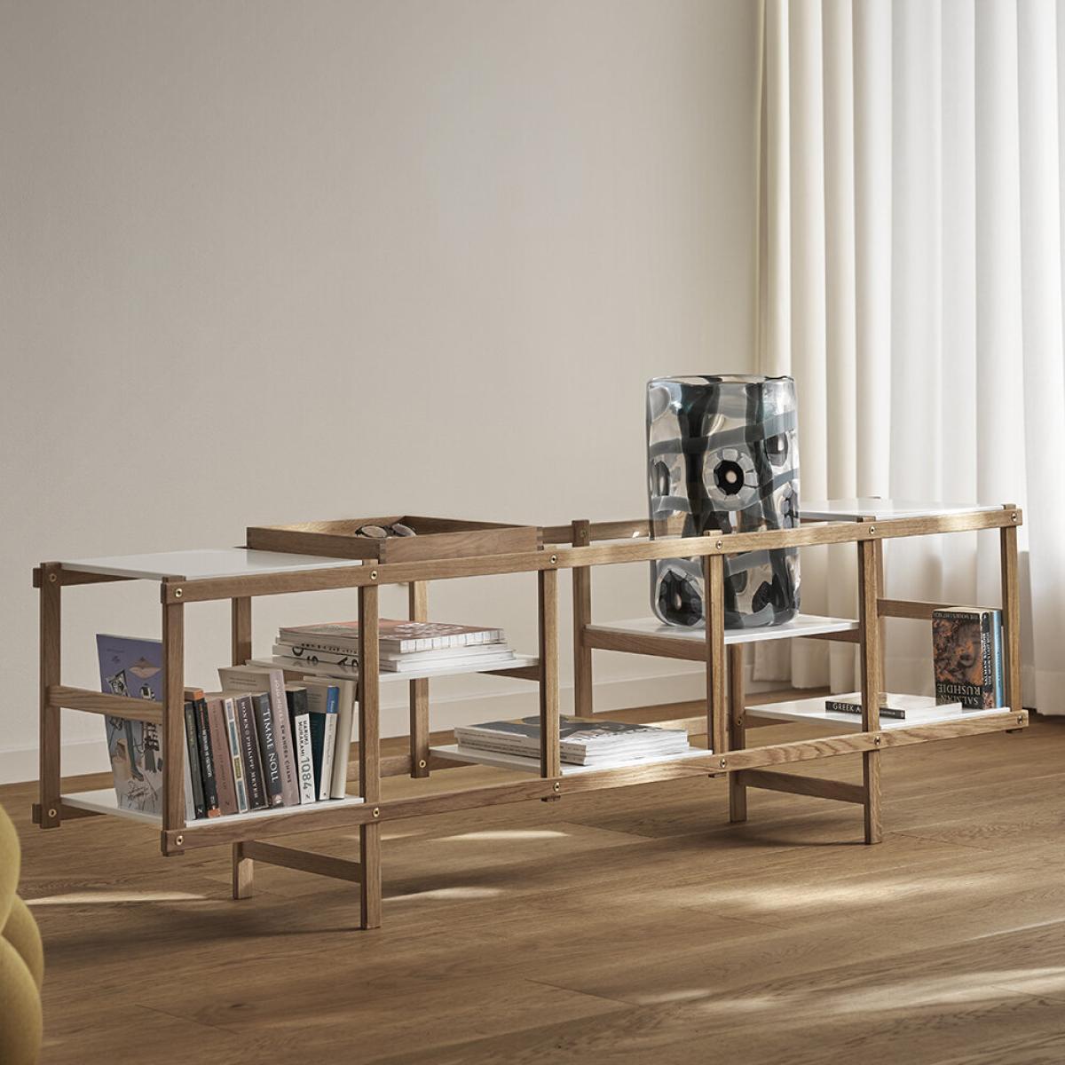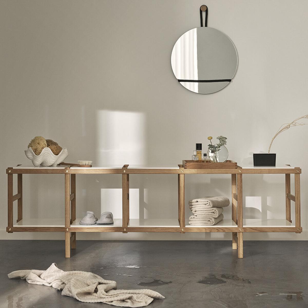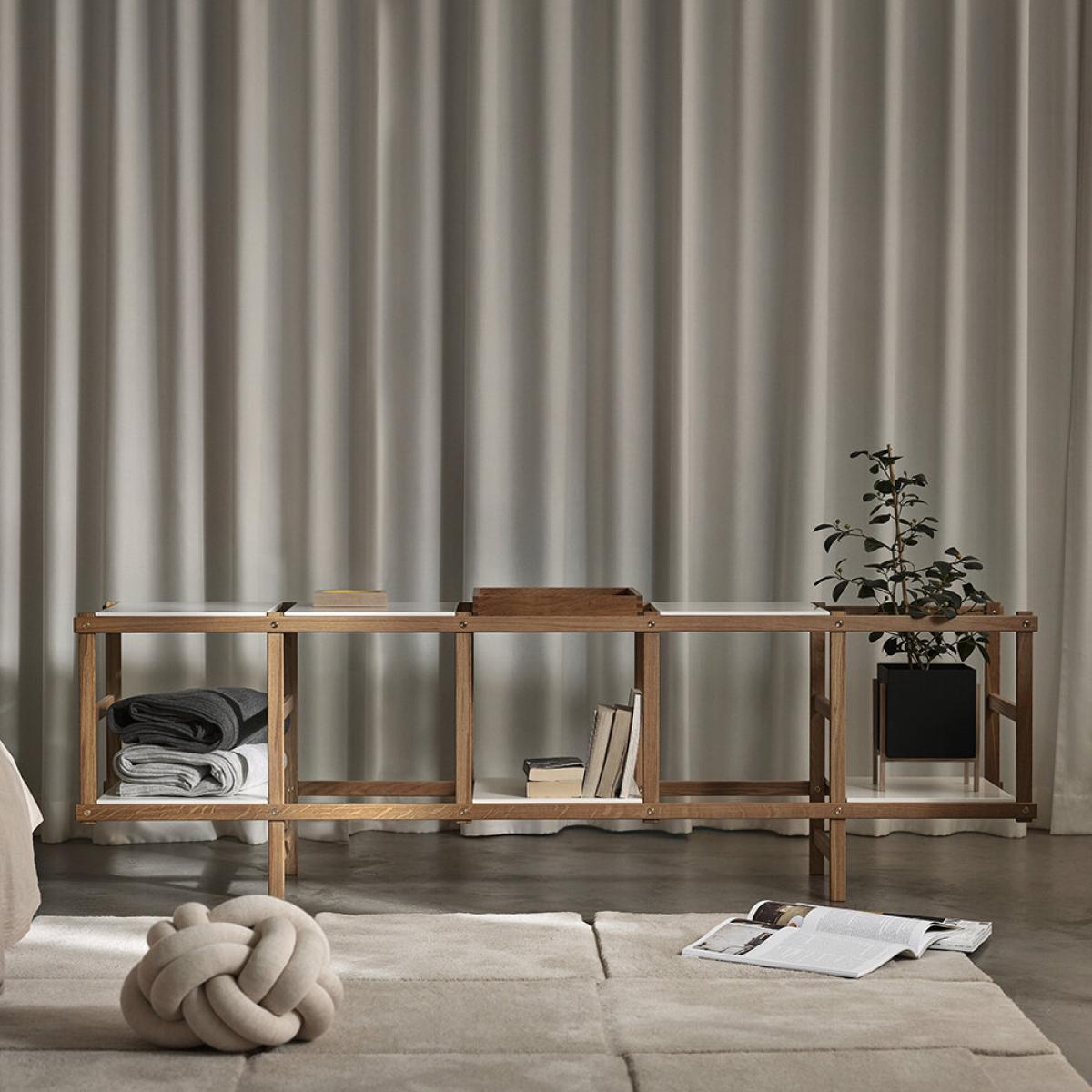 I love this low oak shelf from Design House Stockholm because of its minimalist yet warm aesthetic, making it highly versatile for various interiors. It works particularly well in Scandinavian, modern, or pared-back spaces, providing a functional display area without overwhelming the room. Practical styling tips include layering books, small plants, and decorative objects to add personality, while keeping larger items leaned against the wall for balance. Its low profile makes it ideal for creating a subtle visual anchor in living rooms or home offices, and the natural oak finish adds warmth, helping it blend seamlessly with other wood tones or neutral palettes.