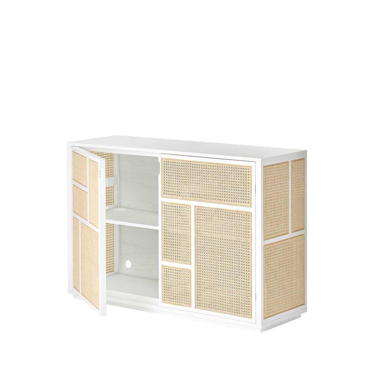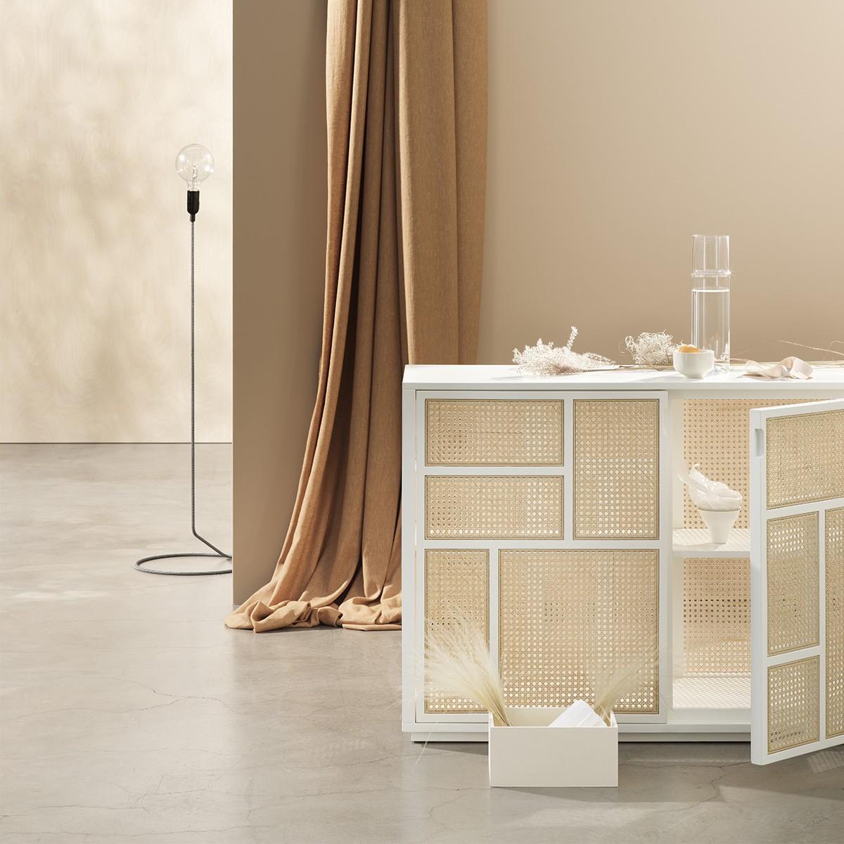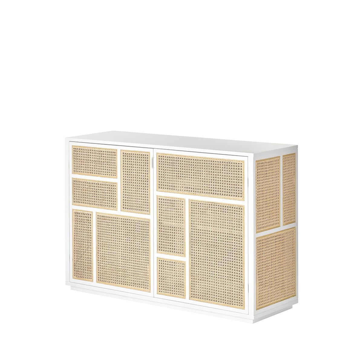 I’m a big fan of the Air sideboard for its clean white frame paired with tactile cane fronts - it brings just the right amount of warmth and texture without overpowering a room. Its lightweight appearance works equally well in Scandi-inspired living rooms, coastal retreats or a pared-back boho scheme, and the generous storage hides everyday clutter while keeping the look streamlined. To style it, group a couple of ceramic vases and a framed print off-centre, and balance them with a low-profile tray holding candles or a small potted plant. Above, a round mirror or a simple shelf lets you lean artwork and adds height. Inside, use matching bins or woven baskets to keep bits and pieces organised and the exterior free of visual noise.