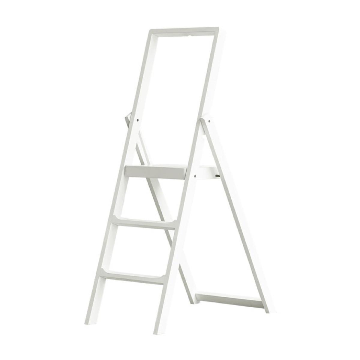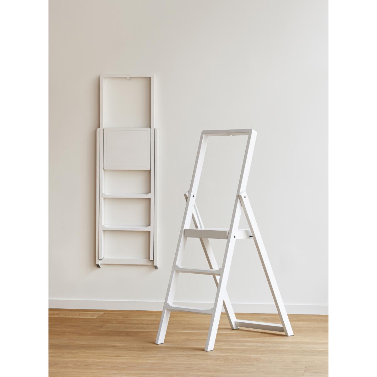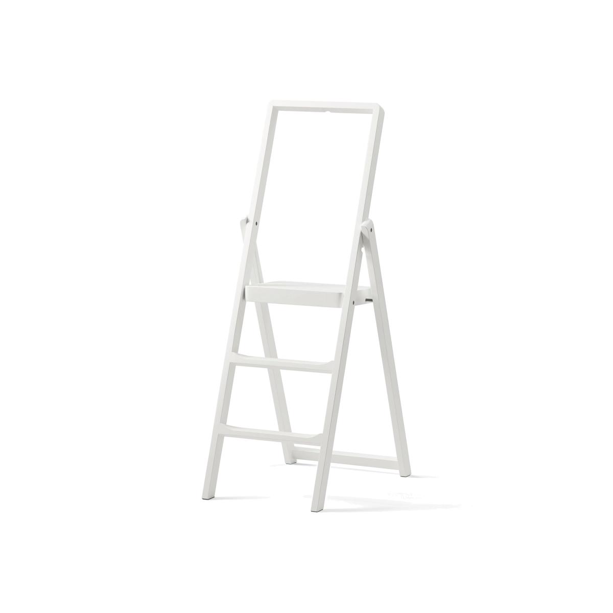 The Step was designed by Karl Malmvall as a multifunctional and decorative stepladder for the home. A handy tool to have nearby, but even when it's not in use it can be neatly folded and hung upon the wall to serve as a stylized detail that accentuates the space of the room. Available in red or high-gloss black.