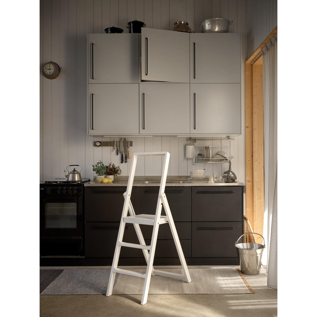 I love how this white step-ladder brings both function and form to a room - its clean lines and pale wash work especially well in Scandinavian, minimalist or modern farmhouse interiors. The lightweight design means you can move it between spaces, from a hallway for keys and umbrellas to a living room for magazines and a vase. For styling, start by hanging a slim cotton throw or lightweight scarf over the top rung, then use the lower steps to display small potted plants, books or folded linens. In a bathroom it’s perfect for rolled towels, while in a bedroom it doubles as a makeshift bedside table for an alarm clock and a couple of carefully chosen reads.
