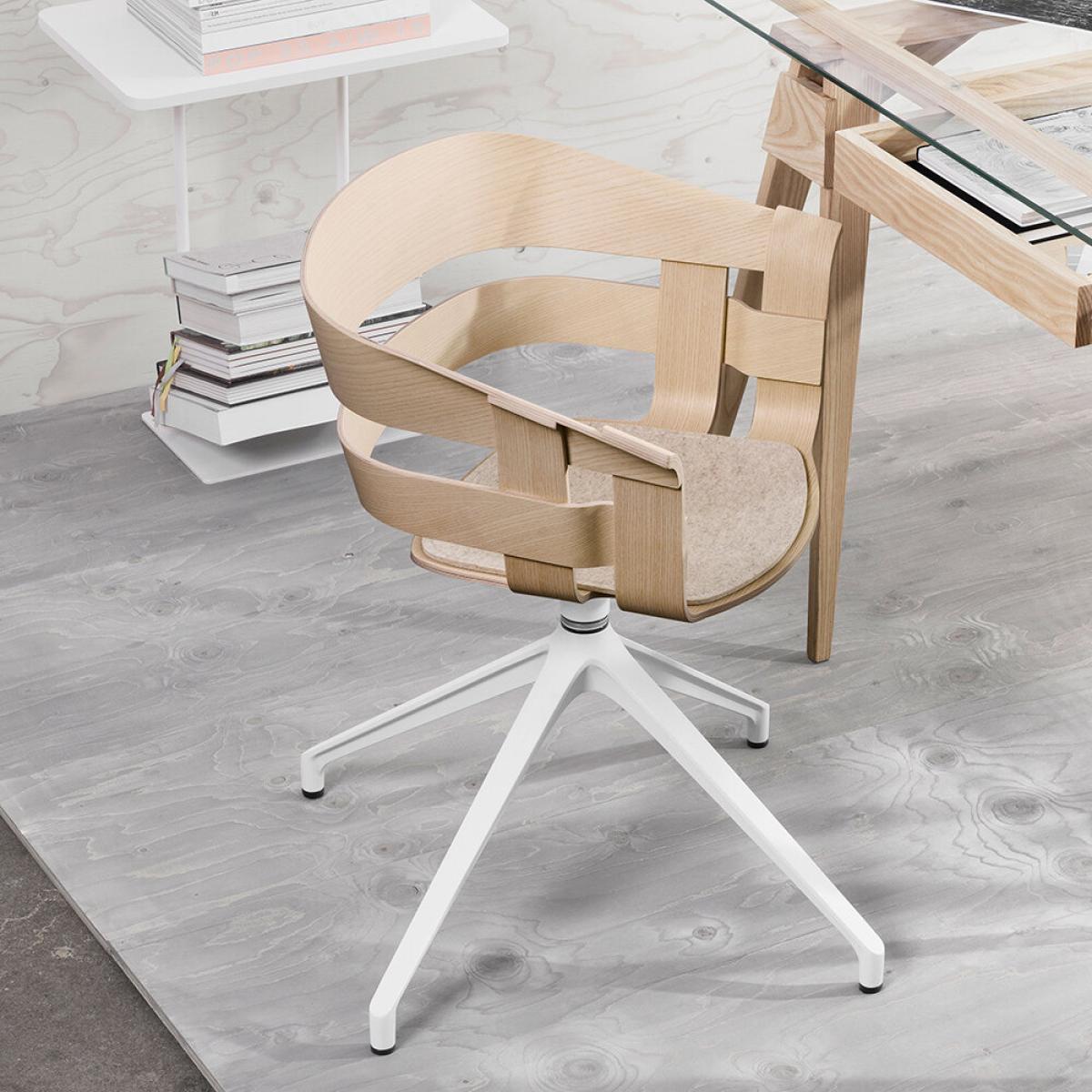 Bring timeless style into your living space with this Swivel Wick chair from Design House Stockholm. A welcome addition to any home office, it features a modern wooden seat with matte white or dark grey legs. Key features: * Material: oak veneer, metal * Dimensions: 57x50.5x75cm * Seat height: 44cm * Swivel chair * Stylish wooden seat * With matte white legs * Designed by Ståhl & Karl Malmwall