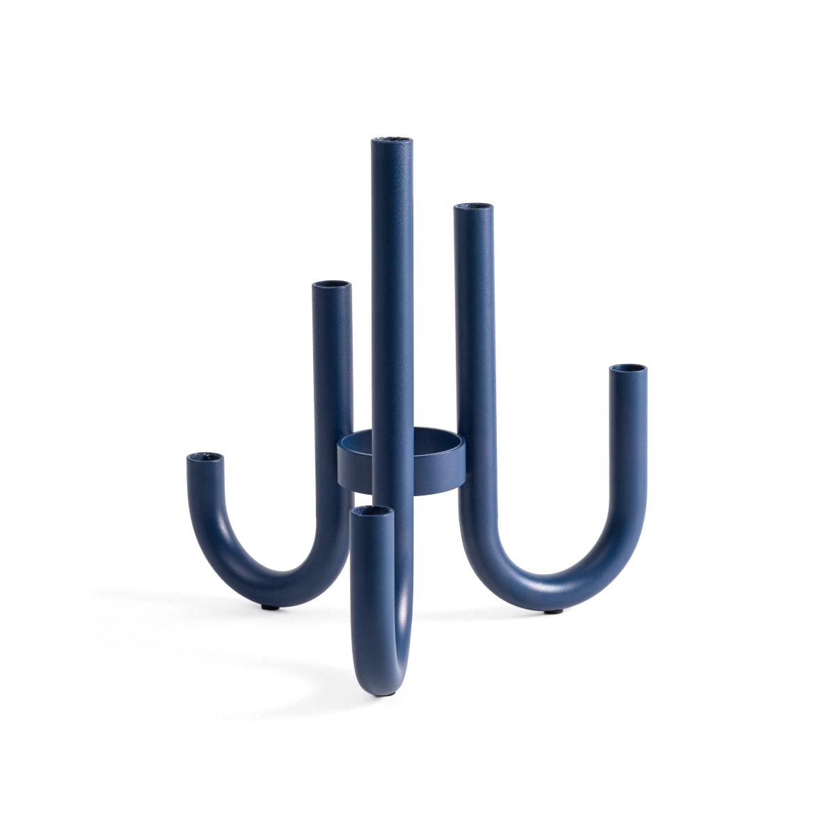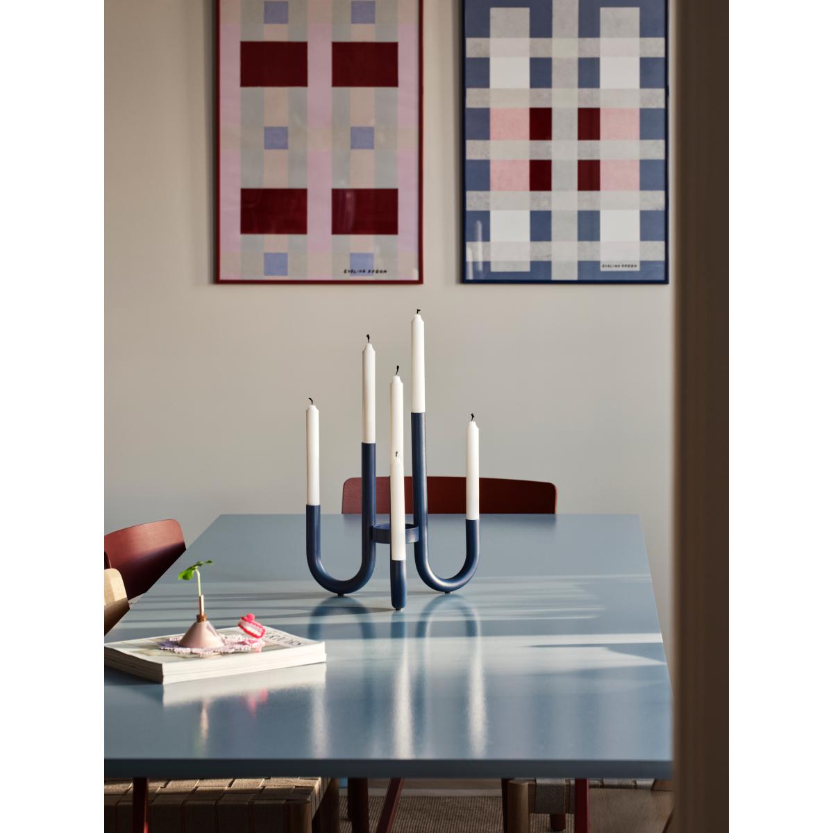 I love this modern candelabra for its bold, sculptural presence and vibrant blue hue, which makes it a statement piece in both contemporary and Scandinavian interiors. It works particularly well in minimalist settings where its colour and form can stand out, but also adds a playful touch to more eclectic or colourful schemes. Practical styling tips include grouping it with simple, monochrome candleholders for a clean look, or placing it centre stage on a dining table or console to create a striking focal point. Its bold design means it’s versatile enough to be used both as a centrepiece or styled on a shelf or sideboard for added visual interest.