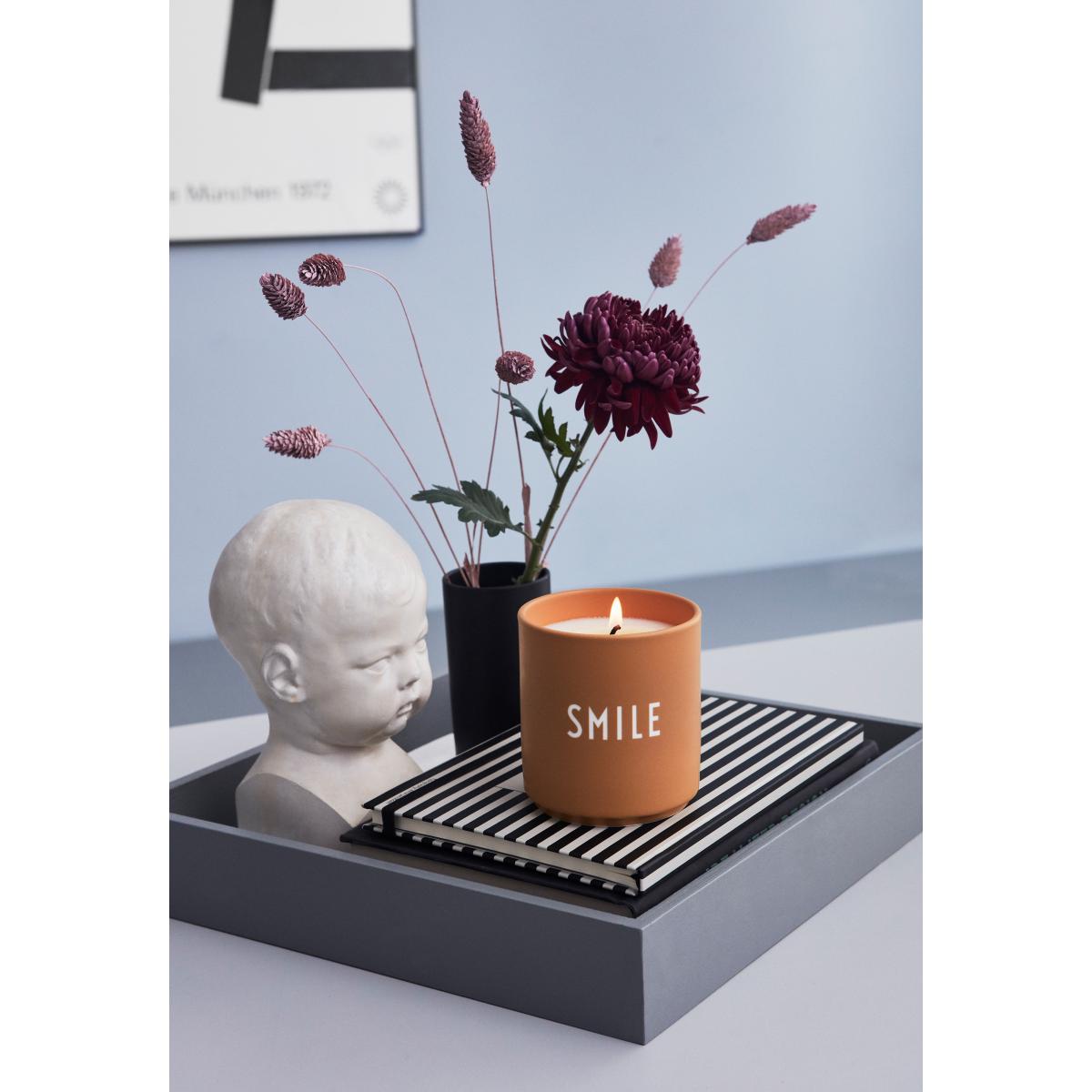 Design Letters scented candle Ø8 cm from Danish brand Design Letters creates a cosy, homely feel in the room and comes in a beautiful porcelain container. You can choose between the "Home" or "Smile" variants, with each having the word engraved into the porcelain with a laser. The scented candles can be placed on a table or in a window in the kitchen, hallway or living room. The scented candles spread a warm glow and fill the room with aromatic scents.