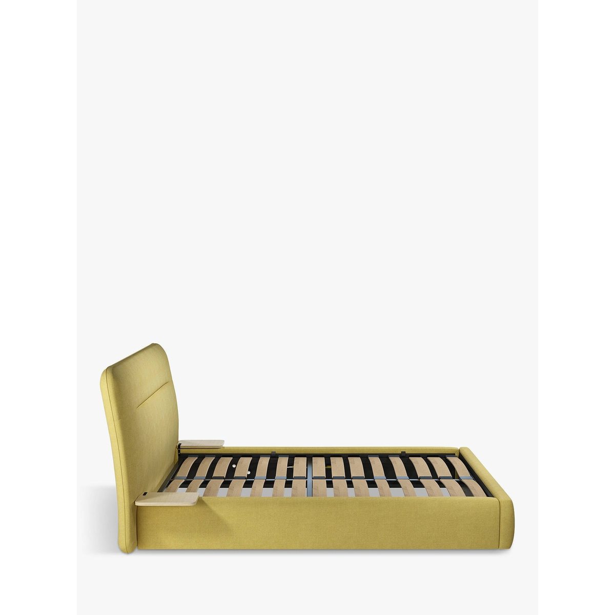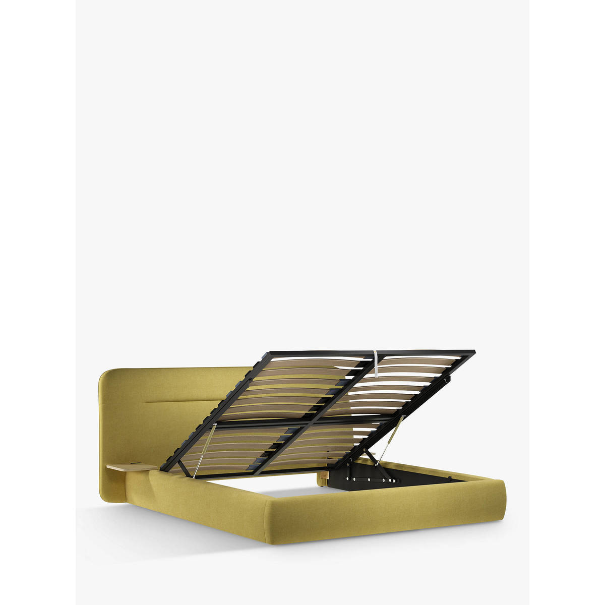 The No.152 ottoman storage bed frame fuses function with style, offering generous storage space in its base so that you can keep your bedroom clutter free. Integrated wooden side tables are suspended neatly on either side of the frame. Ideal for rooms where space is tight, a handle and hydraulic arms facilitate an easy manual lift-up and sprung slats offer additional support for you and your mattress. Smart Slats This bed frame is designed with wider slats at the shoulders, lumbar and feet, that provide maximum support for your mattress so that you experience perfect spinal alignment while you sleep. Standard slat caps are black so we have added grey slat caps to ensure that you know where to place the wider slats.