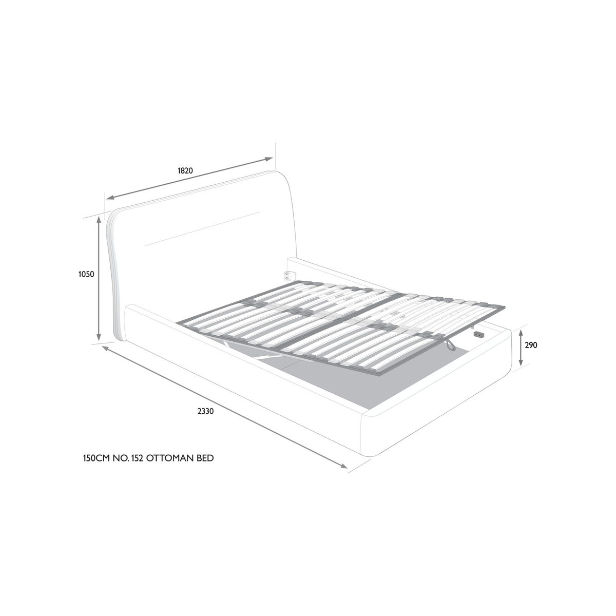 The No.152 ottoman storage bed frame fuses function with style, offering generous storage space in its base so that you can keep your bedroom clutter free. Ideal for rooms where space is tight, a handle and hydraulic arms facilitate an easy manual lift-up and sprung slats offer additional support for you and your mattress. Smart Slats This bed frame is designed with wider slats at the shoulders, lumbar and feet, that provide maximum support for your mattress so that you experience perfect spinal alignment while you sleep. Standard slat caps are black so we have added grey slat caps to ensure that you know where to place the wider slats.