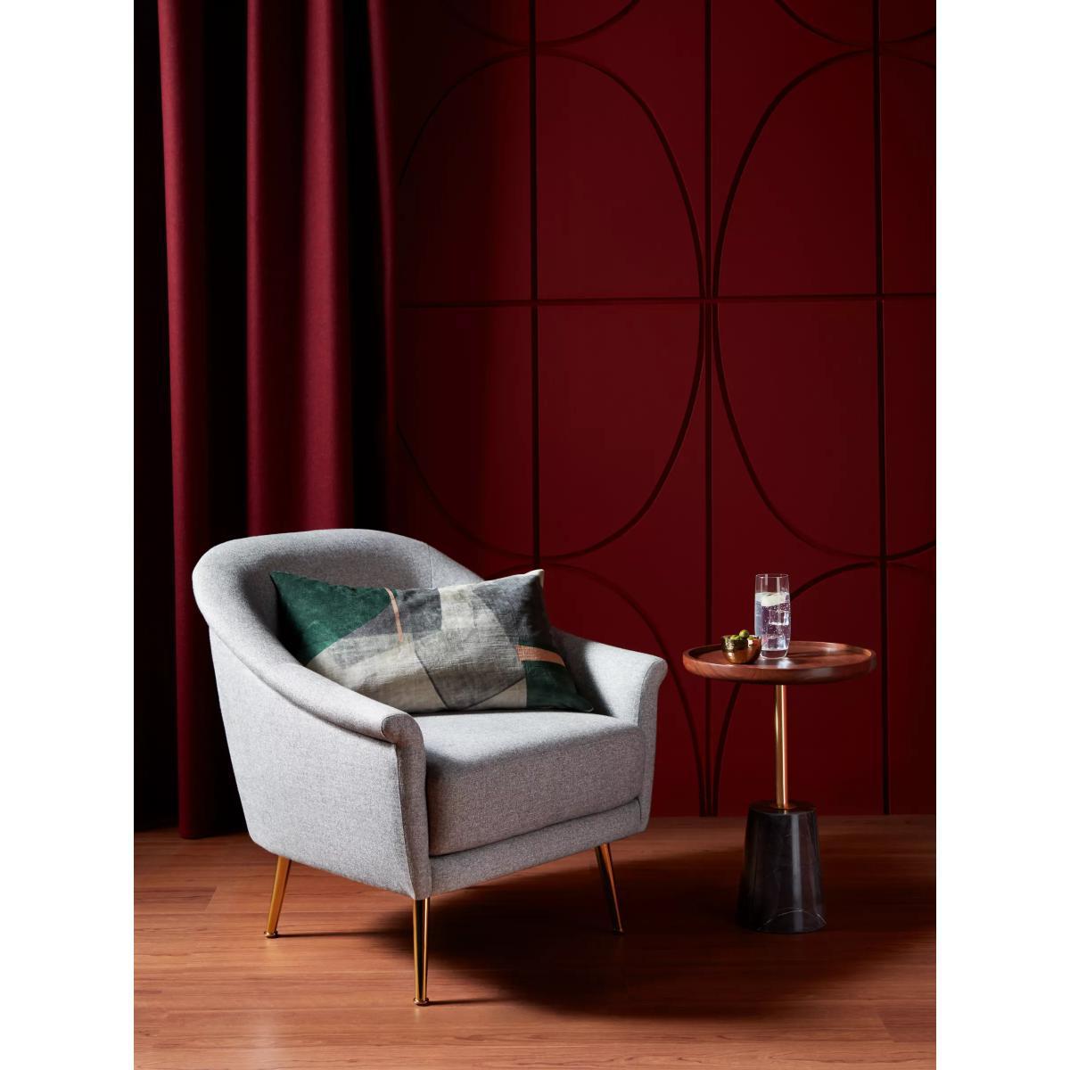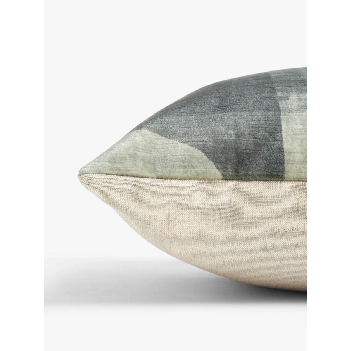 I love this cushion for its sophisticated colour palette and modern abstract pattern, making it versatile across various interior styles. It works particularly well in contemporary or Scandi-inspired spaces, adding a touch of understated elegance without overpowering the room. For styling tips, pair it with neutral-toned sofas or armchairs to create a calm, cohesive look, or mix with other textures and patterns for a more layered, eclectic feel. Its muted greens and soft grey tones make it ideal for relaxed living rooms or bedrooms aiming for a subtle, yet stylish statement.