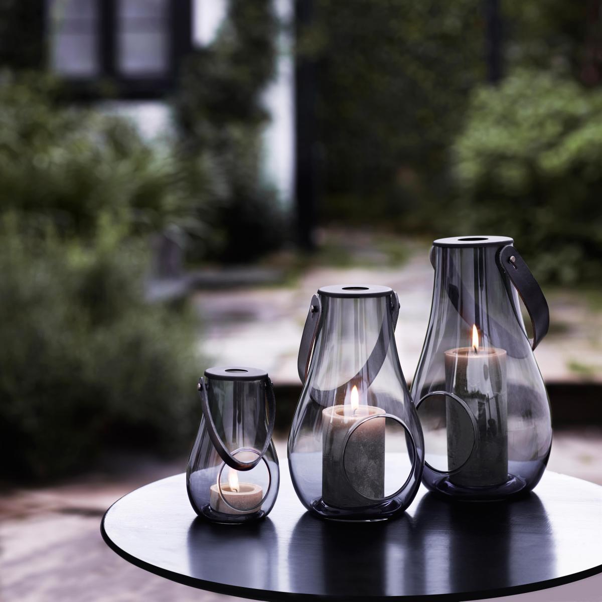The classic Design with Light candle holder smoke is a beautiful interior detail for both indoors and outdoors. This candle holder was designed by Maria Berntsen for Holmegaard and has a true Scandinavian feel, with its stylish lines and the tasteful combination of glass and leather. The lamp comes in several sizes that can be combined or displayed alone.
