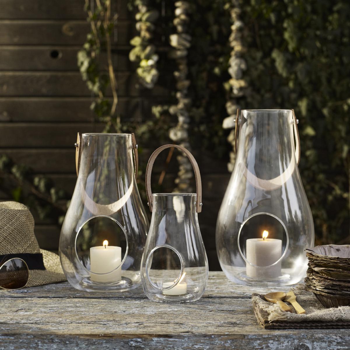 Designer Maria Berntsen found her inspiration for Design With Light in a bottle: both in the familiar shape, but also with the idea of large and small bottles huddled together in a group. This has led to three different sizes in the lantern series, which fit together and are ideal for arranging on the floor, the terrace or the garden table.