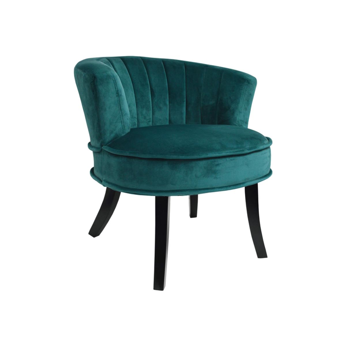 A stunning curved back accent chair perfect for the lounge, dining room, office or bedroom. Made from a solid wood frame, finished in a superb velveteen emerald teal soft touch material and dark stained hardwood legs complete the look. This is a generously sized accent chair. Seat height 46cm x Depth 48cm. Simple self assembly, just attach the legs. Fully complies with UKFR regulations.