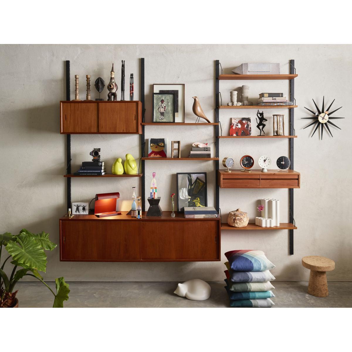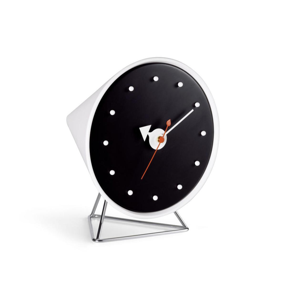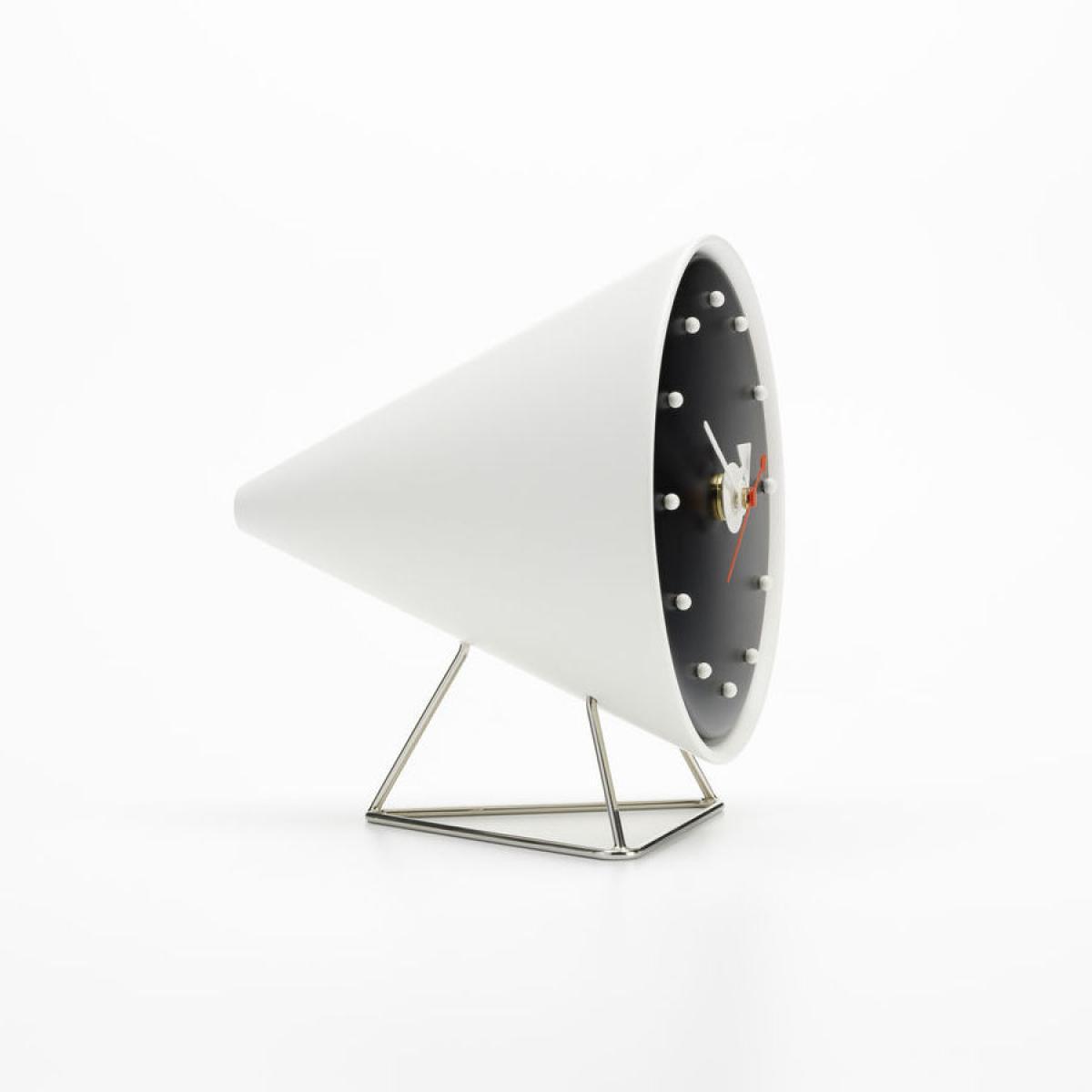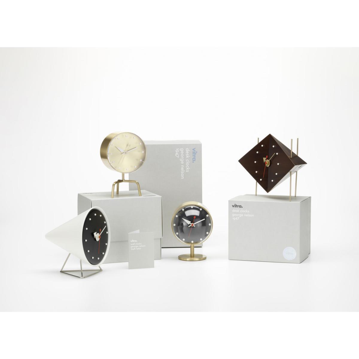 George Nelson (1908 - 1986) is considered to be one of the founders of American modernism. He contributed to the beginning of modern design with a human dimension. Renowned for his collaborations with brands such as Vitra and Herman Miller, he has created several products that are now considered to be icons of mid-20th century modernism. In 1947, the American designer George Nelson was commissioned to create a collection of clocks. Nelson analyzed the way people used clocks and concluded that they read time by discerning the relative position of the hands, so the numbers were unnecessary. Also, as most people wore wristwatches, he assumed that clocks had become more of a decorative element for homes. These ideas formed the base of the first collection of 14 clocks, consisting of a completely new style of wall clocks and compact table clocks, which was launched on the market in 1949. Although the models all have a common feature - no numbers - their shapes, colors, materials and design could hardly have been more diverse. Over the next 35 years, Nelson Associates designers created over 100 different clock models: wall clocks, portable table clocks and built-in clocks. After Nelson's death in 1986, the Vitra Design Museum acquired his inheritance, which includes approximately 7,400 manuscripts, plans, drawings, photographs and slides dating from 1924 to 1984. Vitra launched the reproduction of the Nelson Clocks in 1999 and updates the collection from time to time. Desk Clocks are available in various shapes and materials. Equipped with a high-precision quartz mechanism, they continue to offer a new alternative to classic clocks.