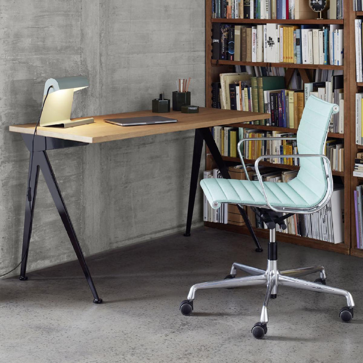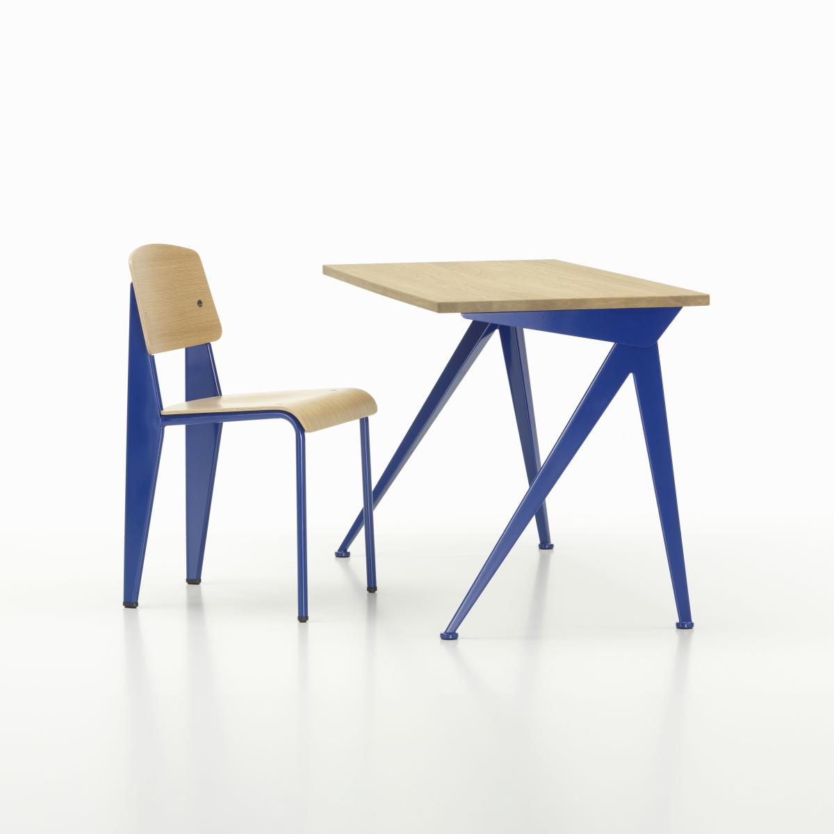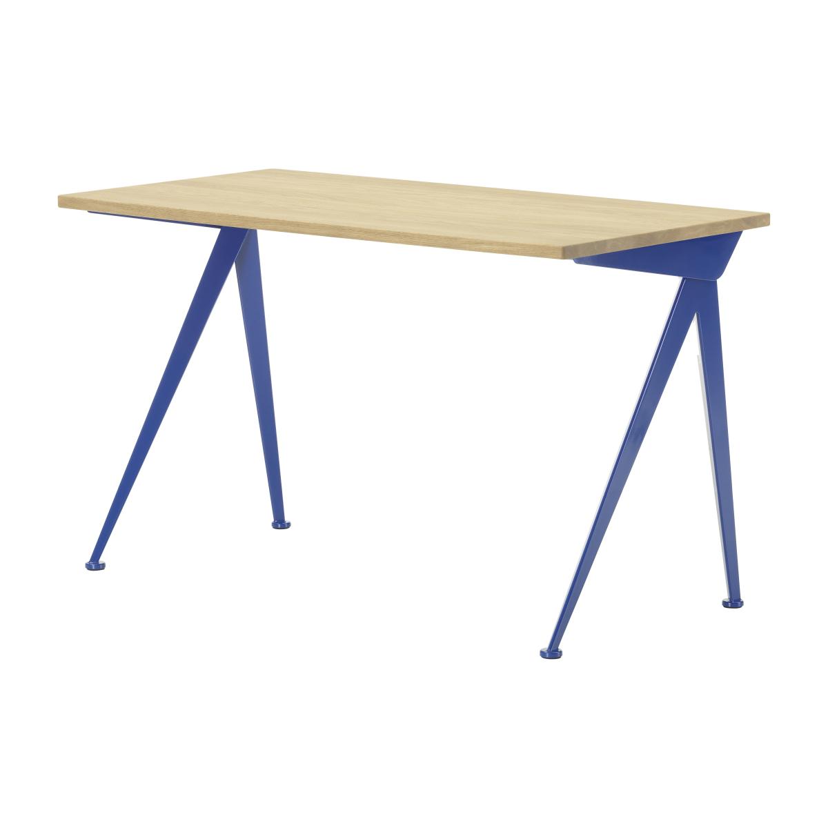 Treat yourself to an ORIGINAL iconic piece by Vitra. An original will always hold its value. It will stay with you for your whole life and outlive you, being passed on to the next generation. A self-taught architect with a passion for industrialising buildings, Jean Prouvé (1901 - 1984) is now considered a leading architect and one of the greatest designers of the 20th century, on a par with Le Corbusier and Charlotte Perriand. A pioneer, Prouvé played a major role in the development of mass production techniques in the European post-war modernist movement. Jean Prouvé developed a "constructive thought" based on a logic of series manufacturing and functionality to create an aesthetic that’s purified of all artifice. The designer has a wide portfolio of designs ranging from prefabricated homes to furniture for offices, classrooms and interiors. Jean Prouvé's creations have become icons of the post-war period and have spanned the whole century. From the 1930s, Jean Prouvé immediately affirmed the particularity of his approach: manufacturing furniture in series on industrial machines. After starting out in fine ironwork, Jean Prouvé discovered electric welding and various shaping techniques which he applied to sheet steel, a material which allowed him to obtain a very solid "hollow body". The use of this material is found in most of his furniture, such as the Compas Direction desk he created in 1953. Jean Prouvé designed several versions of the Compas Direction desk during the 1950s, using the construction principle so characteristic of his style. A common trait: the thin metal legs whose inverted V-shape evokes a schoolboy's compass. The oiled solid wood top gives it a luxurious, comfortable touch. With its compact dimensions, this desk is ideal for creating a workspace in a living room, hallway or bedroom...