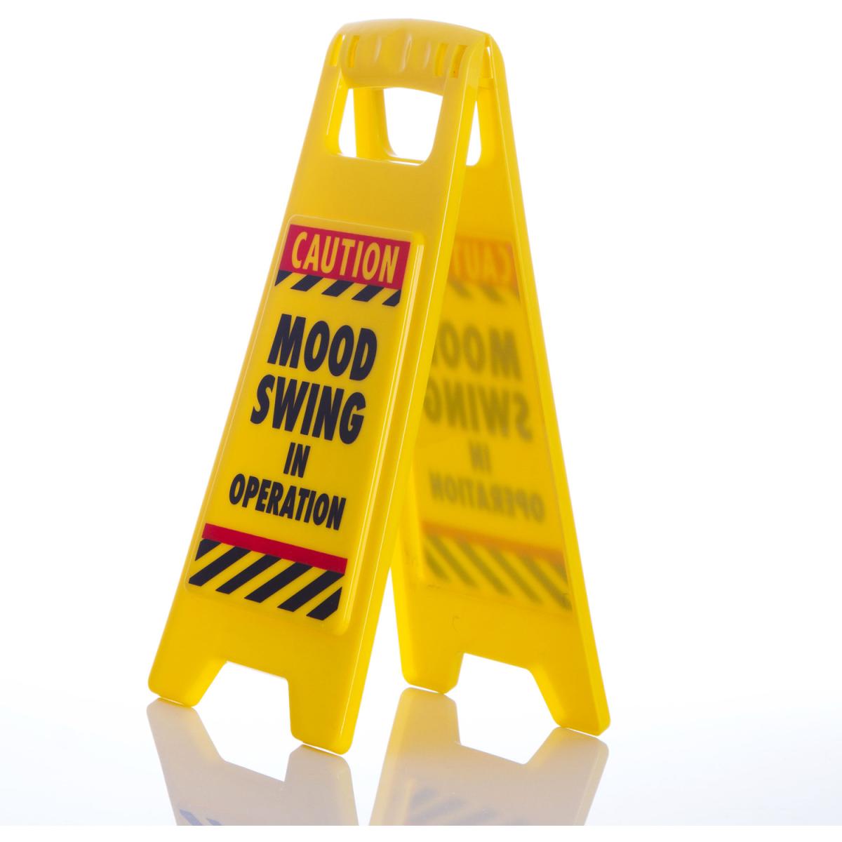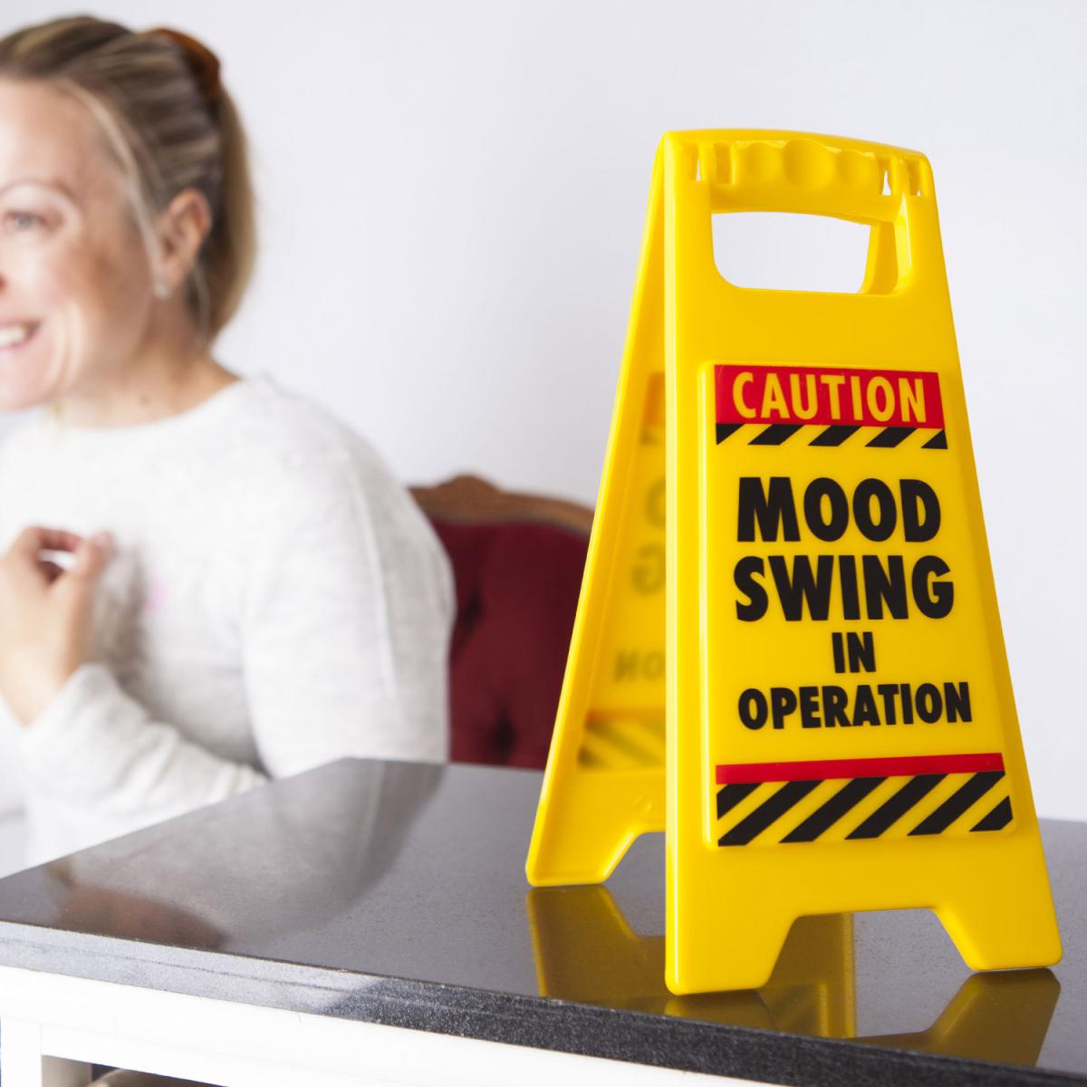 Prepare to scare with this hilarious mood swing warning sign. Bright yellow and small enough to sit on your desk, this lifelike plastic caution sign will warn your work colleagues about your cranky mood, and let them know how grumpy and irritable you are. Perfect as a funny novelty gift to treat yourself or the moody person in your life. A brilliant office gift all year round.