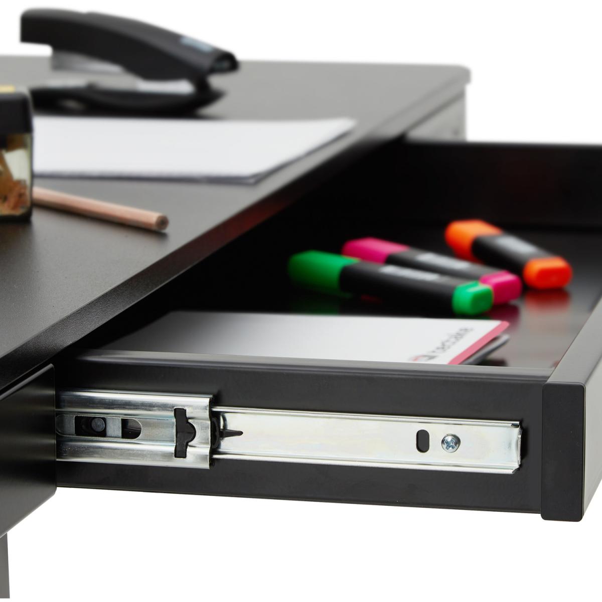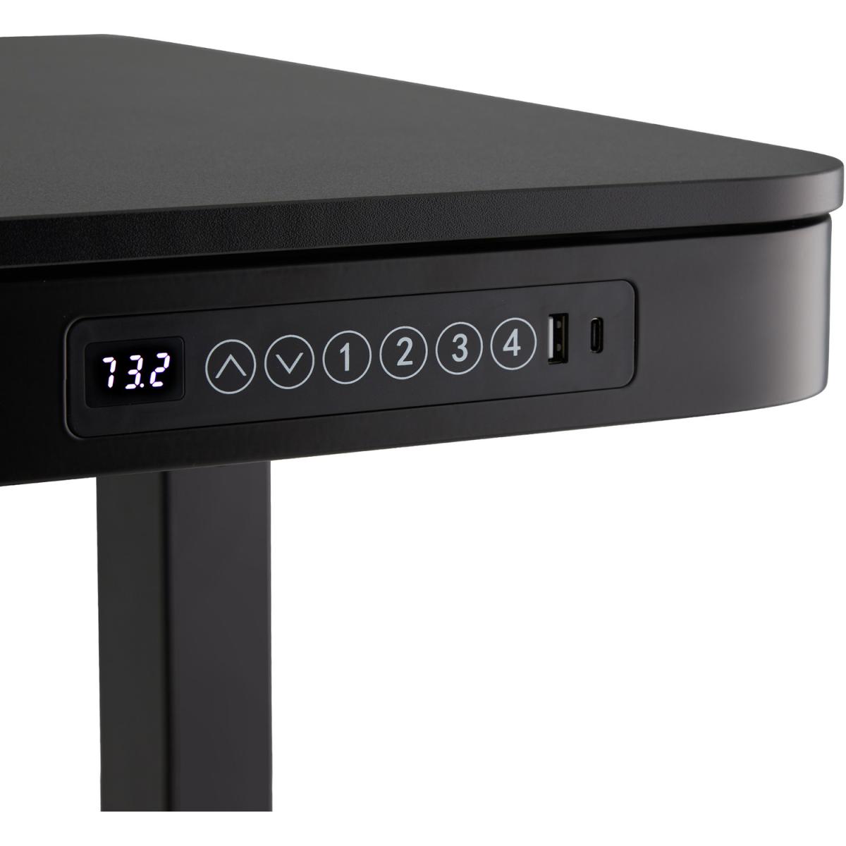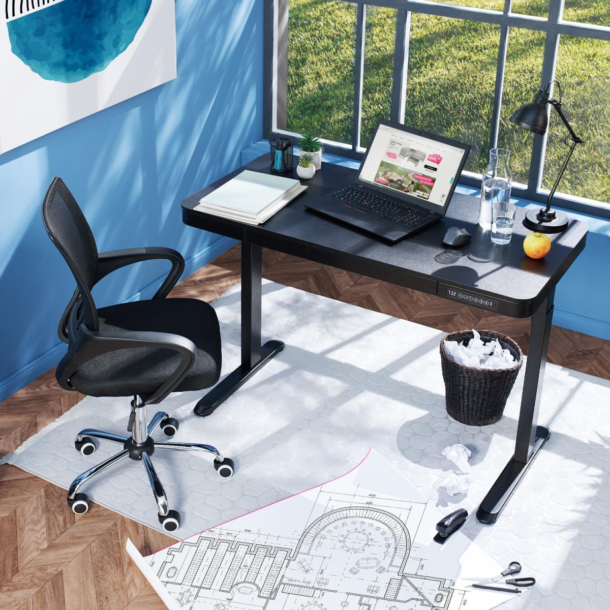 Give your home office more elegance and dynamism with the modern Zola desk from tectake. The desired height of the tabletop work surface can be set quickly and easily with the touch of a finger on the desk's touchpad, or a position that has already been saved can be called up thanks to the desk's memory function. Since the laptop table's flexible frame made of solid steel does not require a cross brace, it ensures maximum legroom. While the adjustable plastic feet compensate for uneven floors, the sensitive anti-collision system reacts immediately to resistance to prevent major collisions if things get in its way. Make use of the desks feature sit, stand and stay in your workflow thanks to the comfortable Zola desk from tectake.