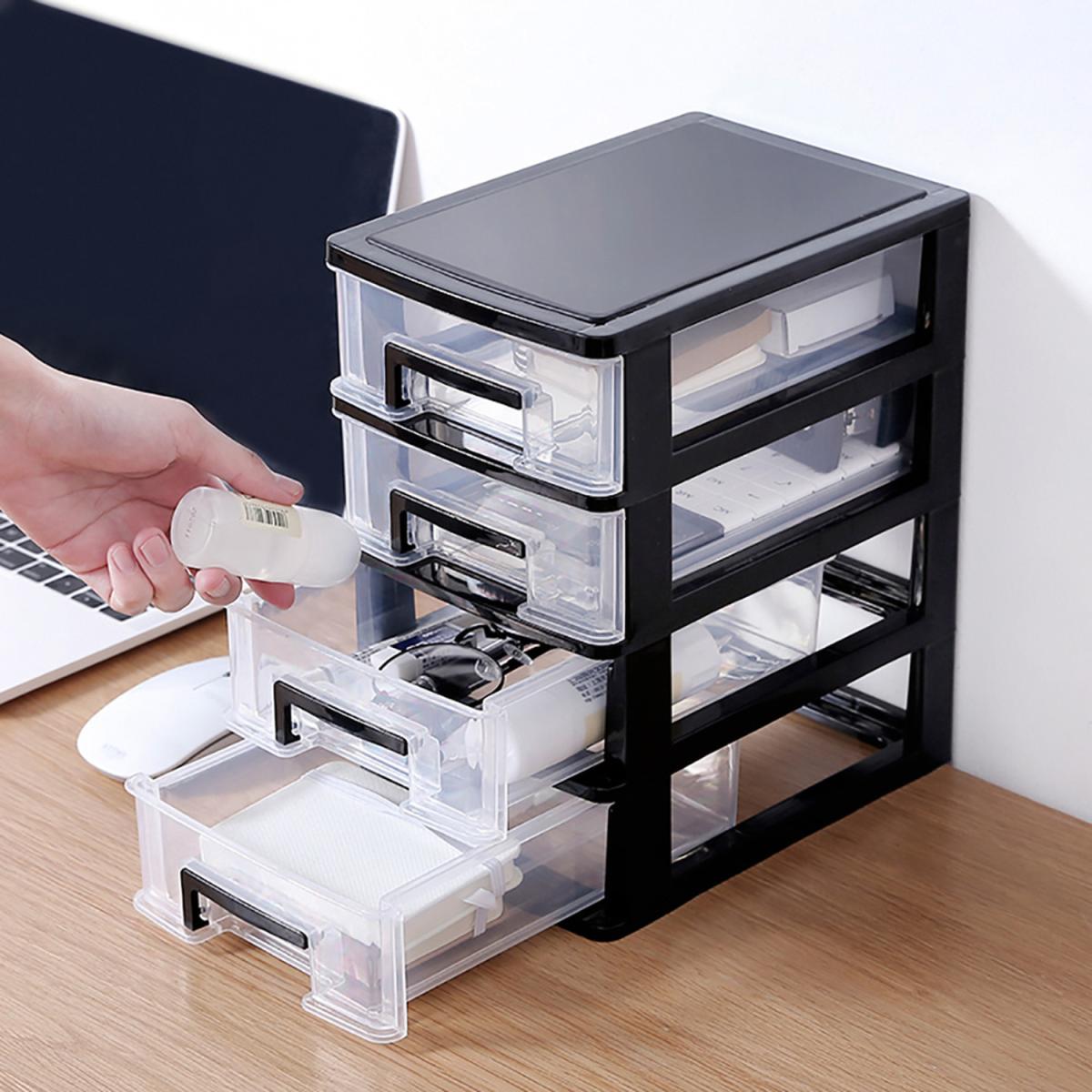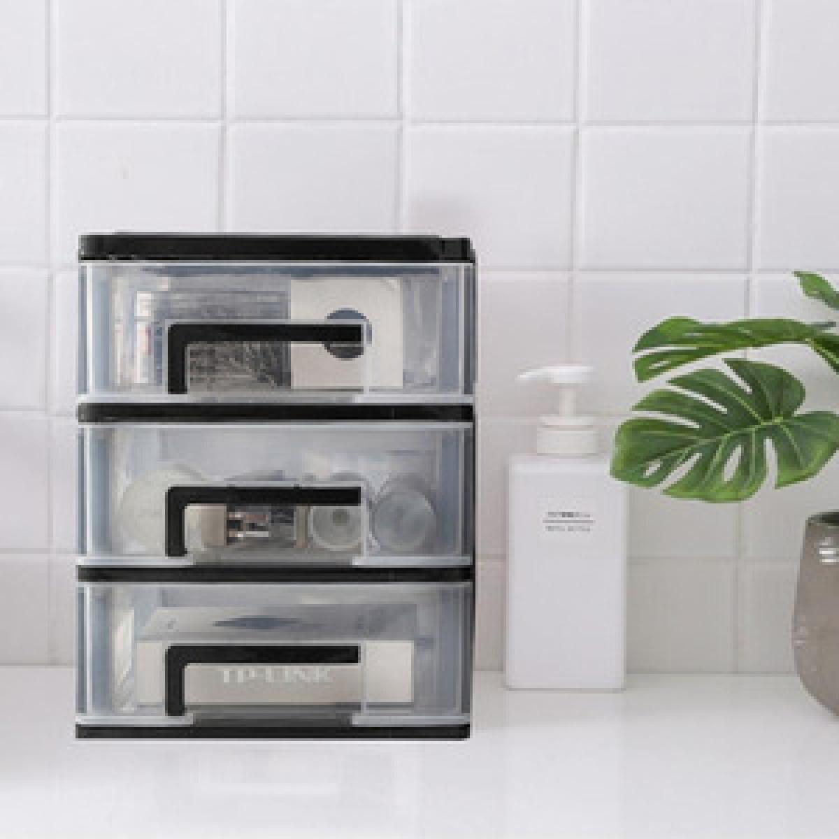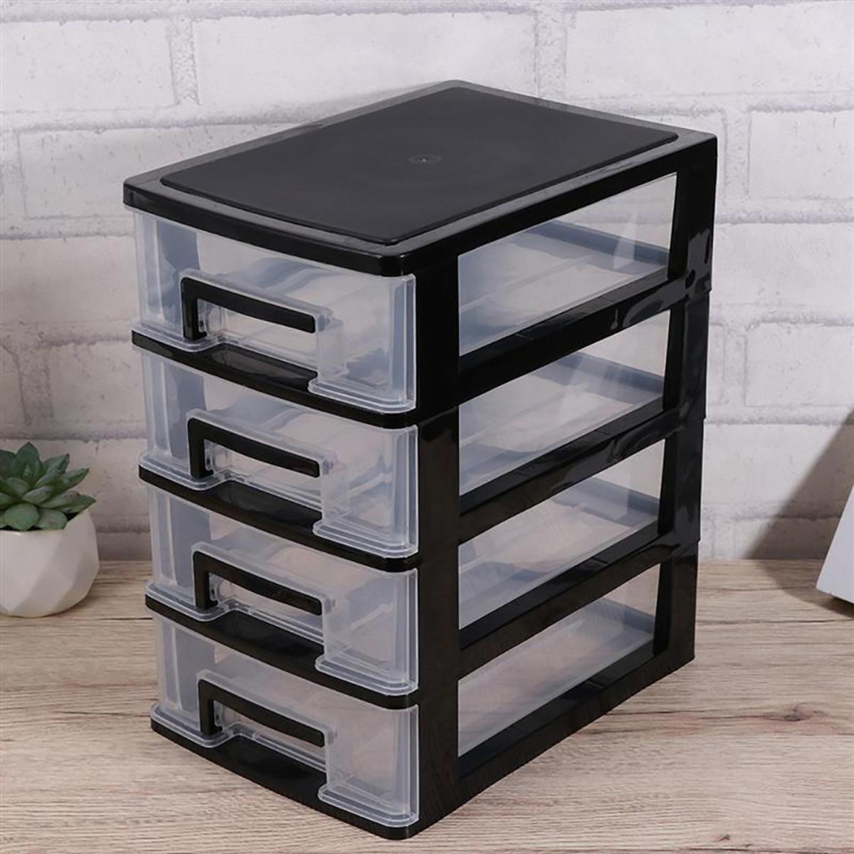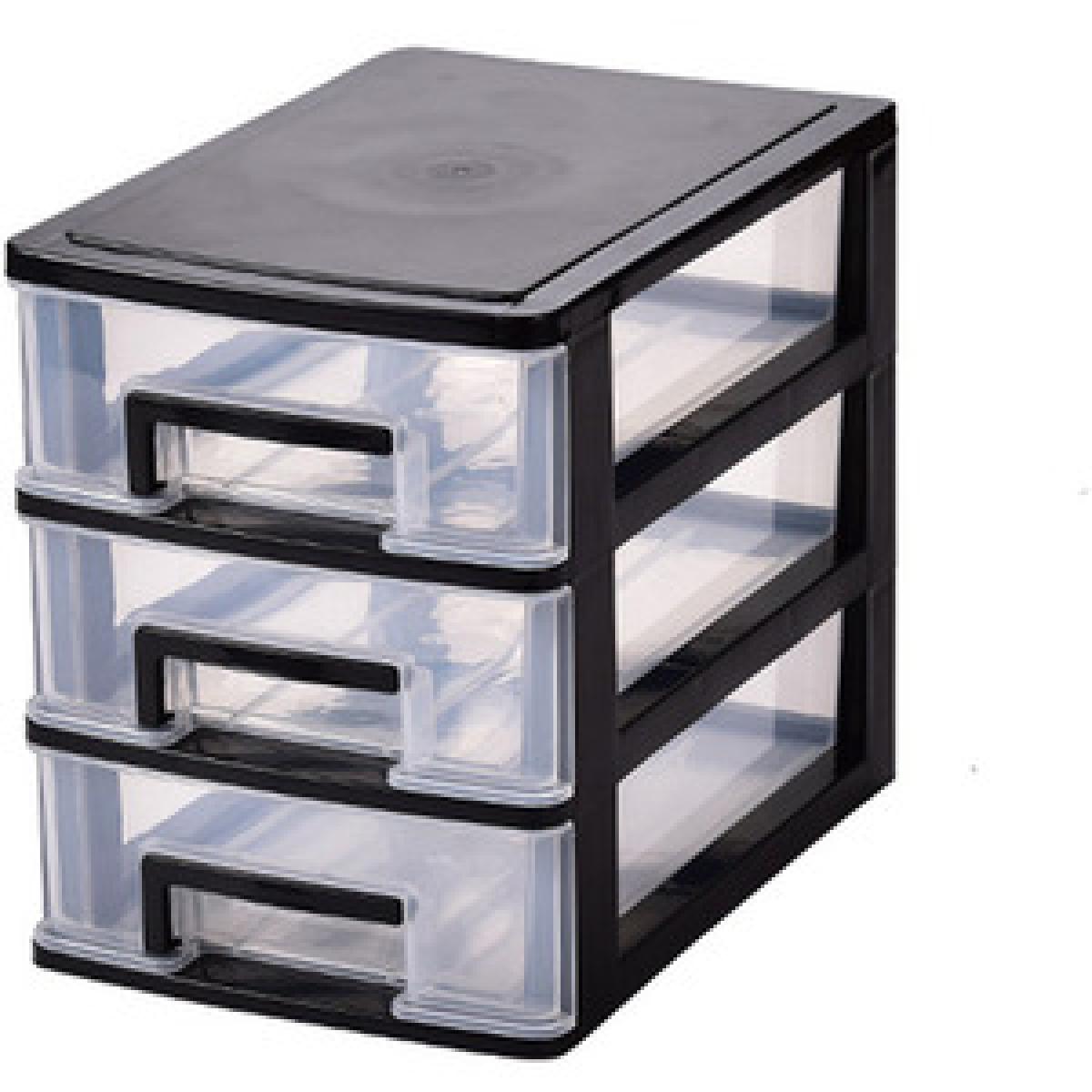 Desktop Plastic Drawer Storage Organizer - Black / 39.5cm