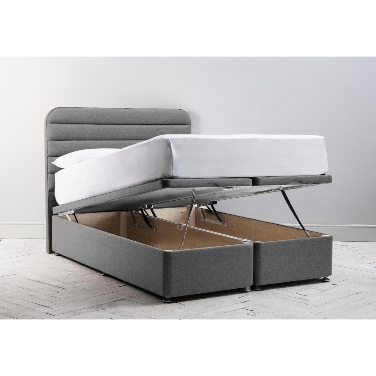 Meet our Desmond; a made to order ottoman bed where form meets function. This robust upholstered ottoman bed has a solid hardwood frame, which provides excellent support to your mattress, and generous storage space inside. Available in over a hundred different upholsteries to choose from, each Desmond is made to order by hand exclusively for you, so that you can give your bedroom your very own touch of personal style. Meet our Desmond; a made to order ottoman bed where form meets function. This robust upholstered ottoman bed has a solid hardwood frame, which provides excellent support to your mattress, and generous storage space inside. Available in over a hundred different upholsteries to choose from, each Desmond is made to order by hand exclusively for you, so that you can give your bedroom your very own touch of personal style.