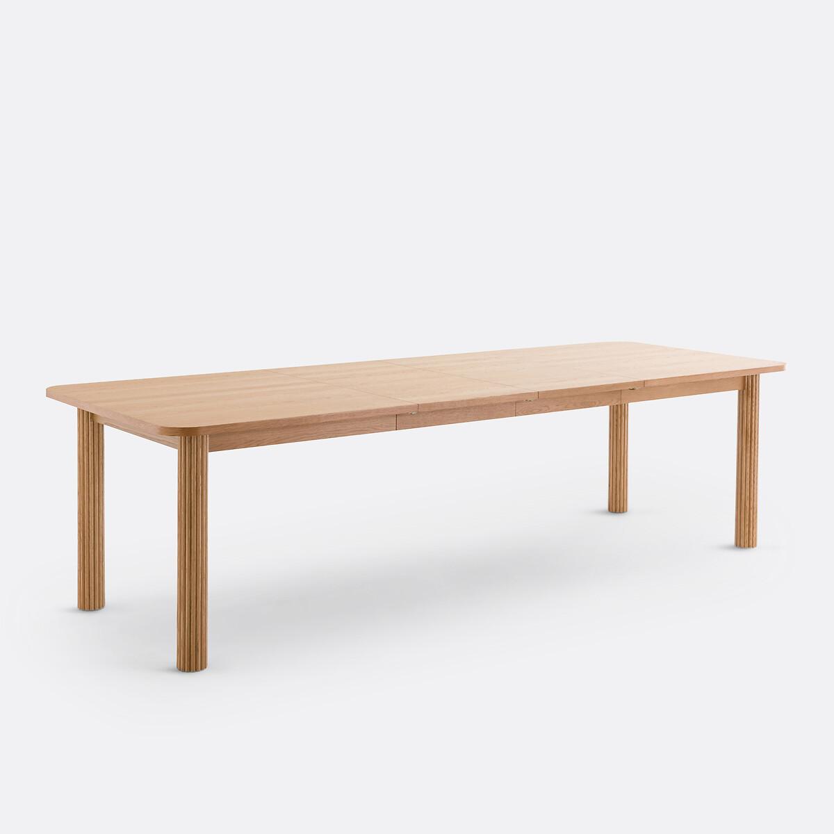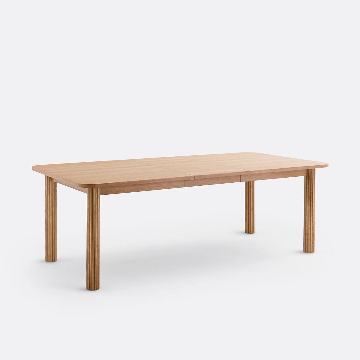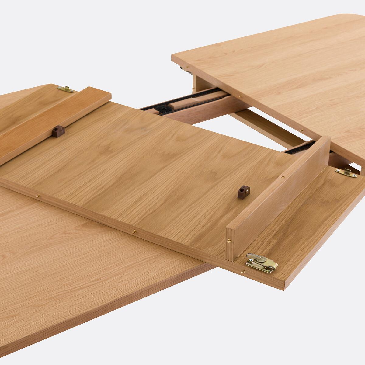 Generous proportions, fluted legs... Here is Desna, a table with a modern design inspired by the Scandinavian style. Practical, its tray opens thanks to a synchronised system that's very easy to handle. Large tables are created easily!Designed by La Redoute Intérieurs. Product Details • Top and extensions in oak veneered particleboard, polyurethane varnish finish (thickness.2.6cm) • Metal rack slides on wooden support • Solid oak fluted legs (diameter 9cm) • Frame in oak veneered plywood • 2 extensions of 50cm with folding "belts", to be stored separatelyDimensions. Overall • Width: 170/220/270cm • Height: 75cm • Depth: 100cm. Usable space • Dimensions between floor and frame: 64.5cm • Dimensions between legs: L134/184/234cmDelivery:. This product is delivered unassembled. Available for home delivery. Note! Please check that access points (doorways, stairways, lifts) are wide enough to accommodate your delivery. • WOOD FROM SUSTAINABLY MANAGED FORESTS. FSC® certified wood comes from forests that are environmentally, socially and economically well managed. Dimensions and weight of parcel2 parcels • L180 x H18.5 x D110cm. 70kg • L111 x H15.5 x D59cm. 25kg
