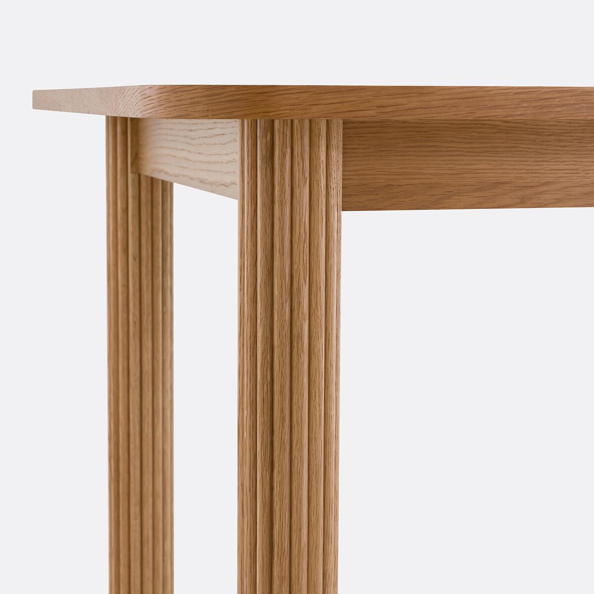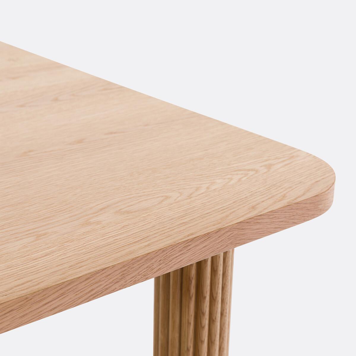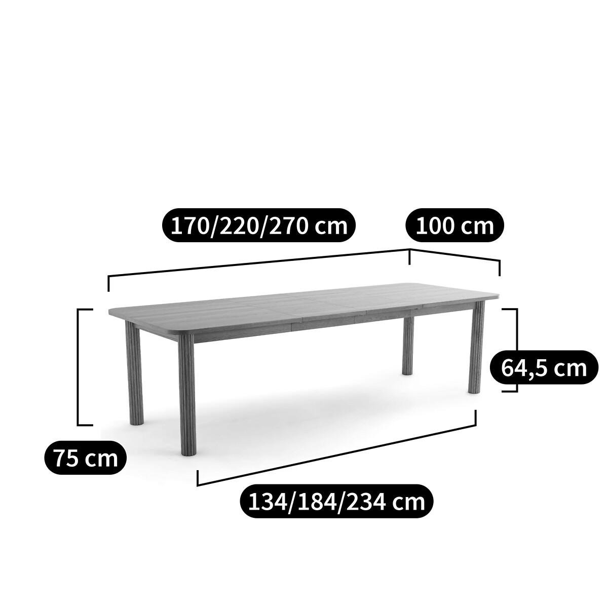 Generous proportions, fluted legs... Here is Desna, a table with a modern design inspired by the Scandinavian style. Practical, its tray opens thanks to a synchronised system that's very easy to handle. Large tables are created easily!Designed by La Redoute Intérieurs. Product Details • Top and extensions in oak veneered particleboard, polyurethane varnish finish (thickness.2.6cm) • Metal rack slides on wooden support • Solid oak fluted legs (diameter 9cm) • Frame in oak veneered plywood • 2 extensions of 50cm with folding "belts", to be stored separatelyDimensions. Overall • Width: 170/220/270cm • Height: 75cm • Depth: 100cm. Usable space • Dimensions between floor and frame: 64.5cm • Dimensions between legs: L134/184/234cmDelivery:. This product is delivered unassembled. Available for home delivery. Note! Please check that access points (doorways, stairways, lifts) are wide enough to accommodate your delivery. • WOOD FROM SUSTAINABLY MANAGED FORESTS. FSC® certified wood comes from forests that are environmentally, socially and economically well managed. Dimensions and weight of parcel2 parcels • L180 x H18.5 x D110cm. 70kg • L111 x H15.5 x D59cm. 25kg